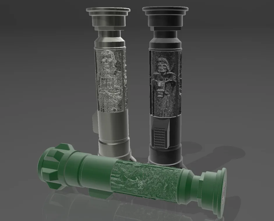 Phối lại của thanh kiếm ánh sáng có thể thu gọn với một lithophane được thêm vào trên tay cầm và một không gian để thêm đèn trà để nó sáng lên