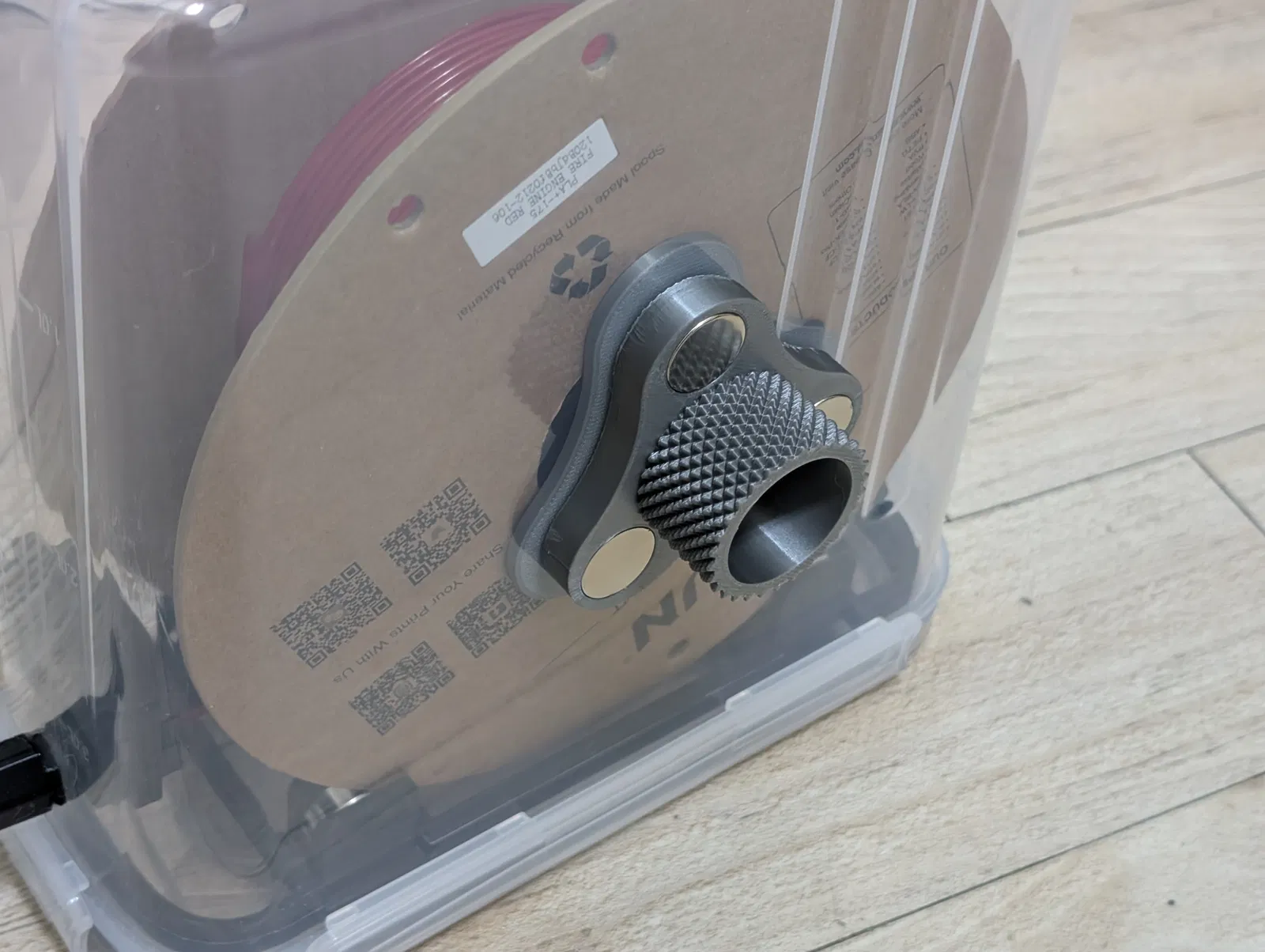 Dụng cụ tua lại cuộn filament ngay trong drybox mà không cần mở nắp. Dùng nam châm 18×3mm, lắp khít không cần keo hay khoan. Có nhiều kích cỡ adapter cho các loại spool khác nhau.