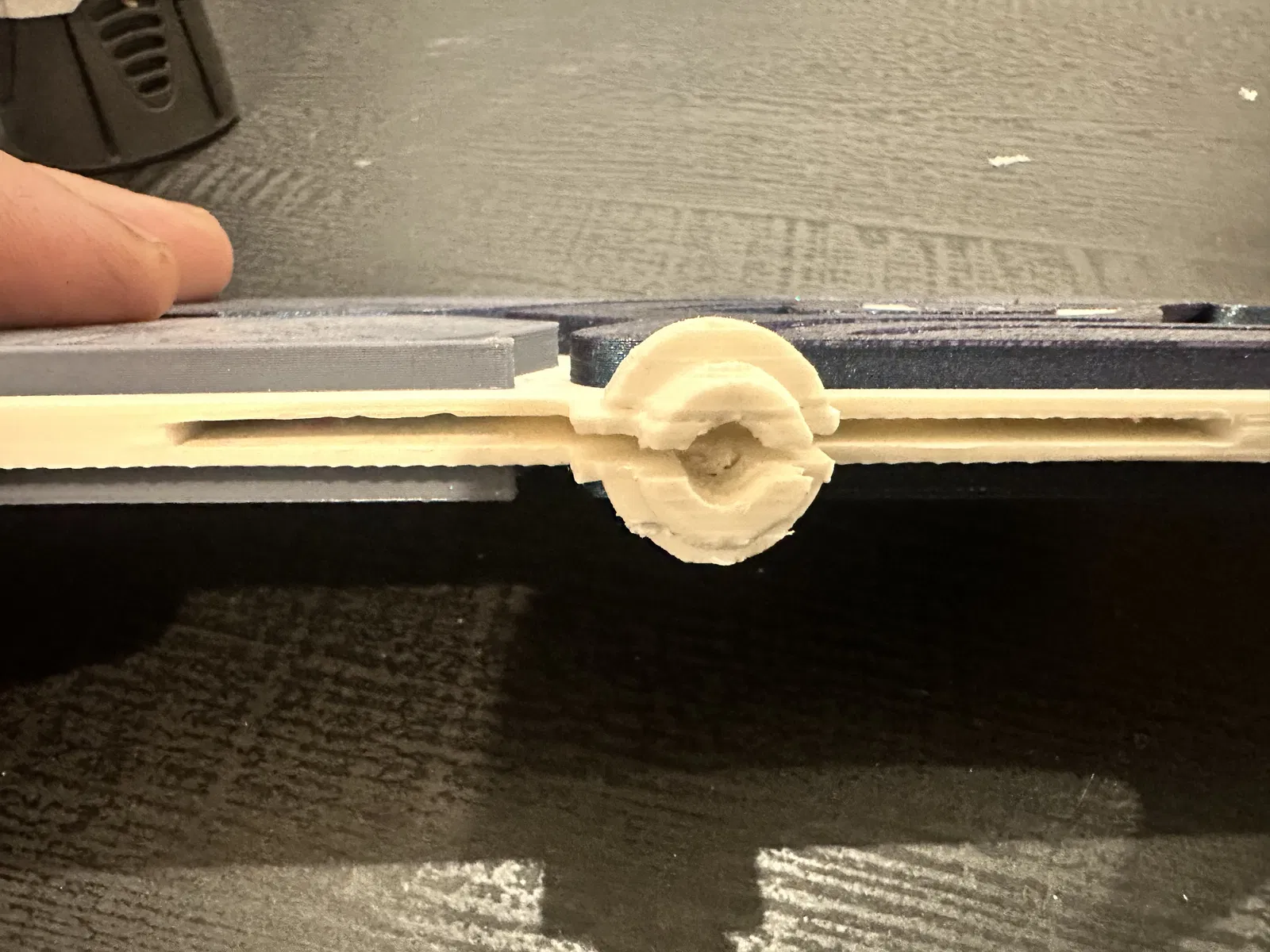 QUAN TRỌNG! Nhớ thêm, hoặc đánh dấu, support blocker ở khe thẻ và cái khe trong phần ren (nếu khi load file nó không có sẵn). Bạn sẽ không bao giờ lôi supports ra khỏi cái khe nhỏ đó được. Mình cũng có đặt pause ở layer 49 (máy mình là vậy, bạn xem lại trên slicer của bạn) cho phần trên của khe thẻ và chèn thêm chút giấy bìa (construction paper) để nhịp cầu (bridge) khỏi bị xệ nhiều—thật ra không bắt buộc, chỉ là mình muốn chắc ăn.