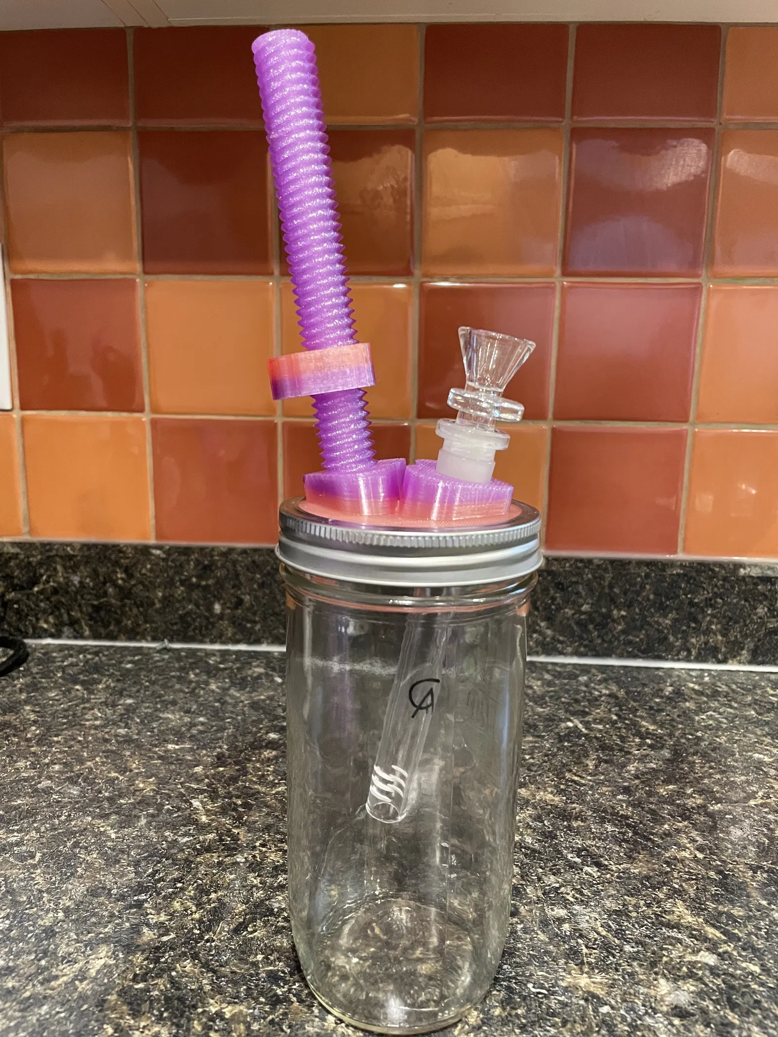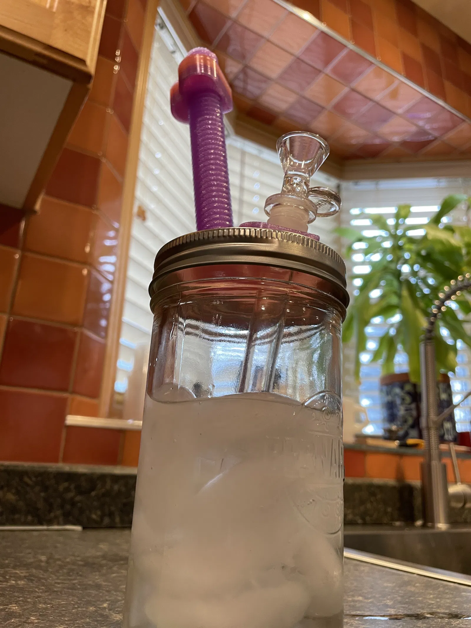 Đúng rồi đó, đây là một cái water bong kiểu nhà làm, ghép từ một hũ mason miệng rộng và chút “tình yêu”! Thêm nữa là bạn còn có thể nghịch nó như một fidget spinner nữa!!!