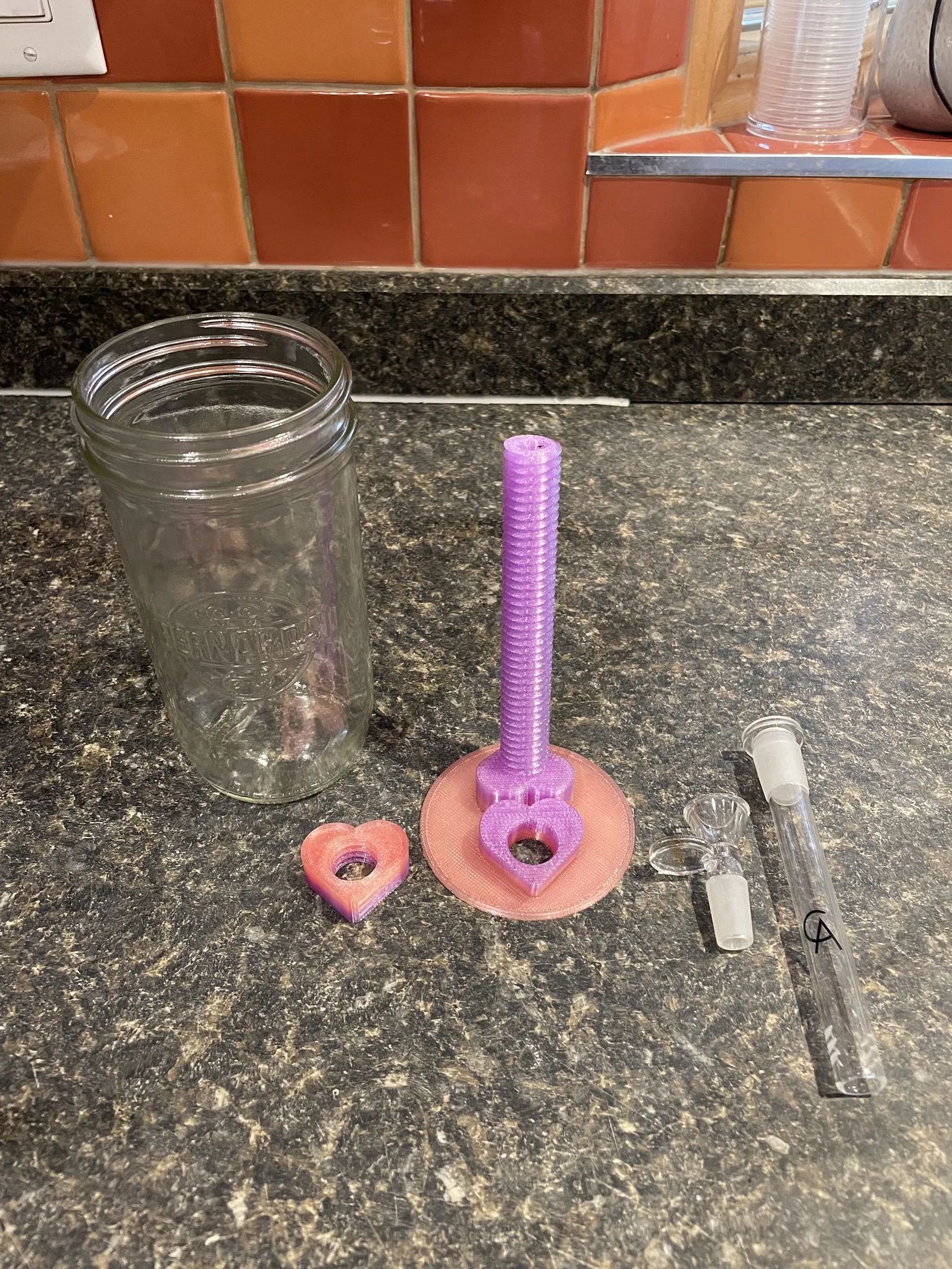 Mẫu water bong DIY kiểu nhà làm từ hũ mason miệng rộng, thiết kế hình trái tim kiêm fidget spinner để vừa dùng vừa xoay nghịch cho vui. Hợp cho ai thích đồ stoner và kiểu chơi lạ.