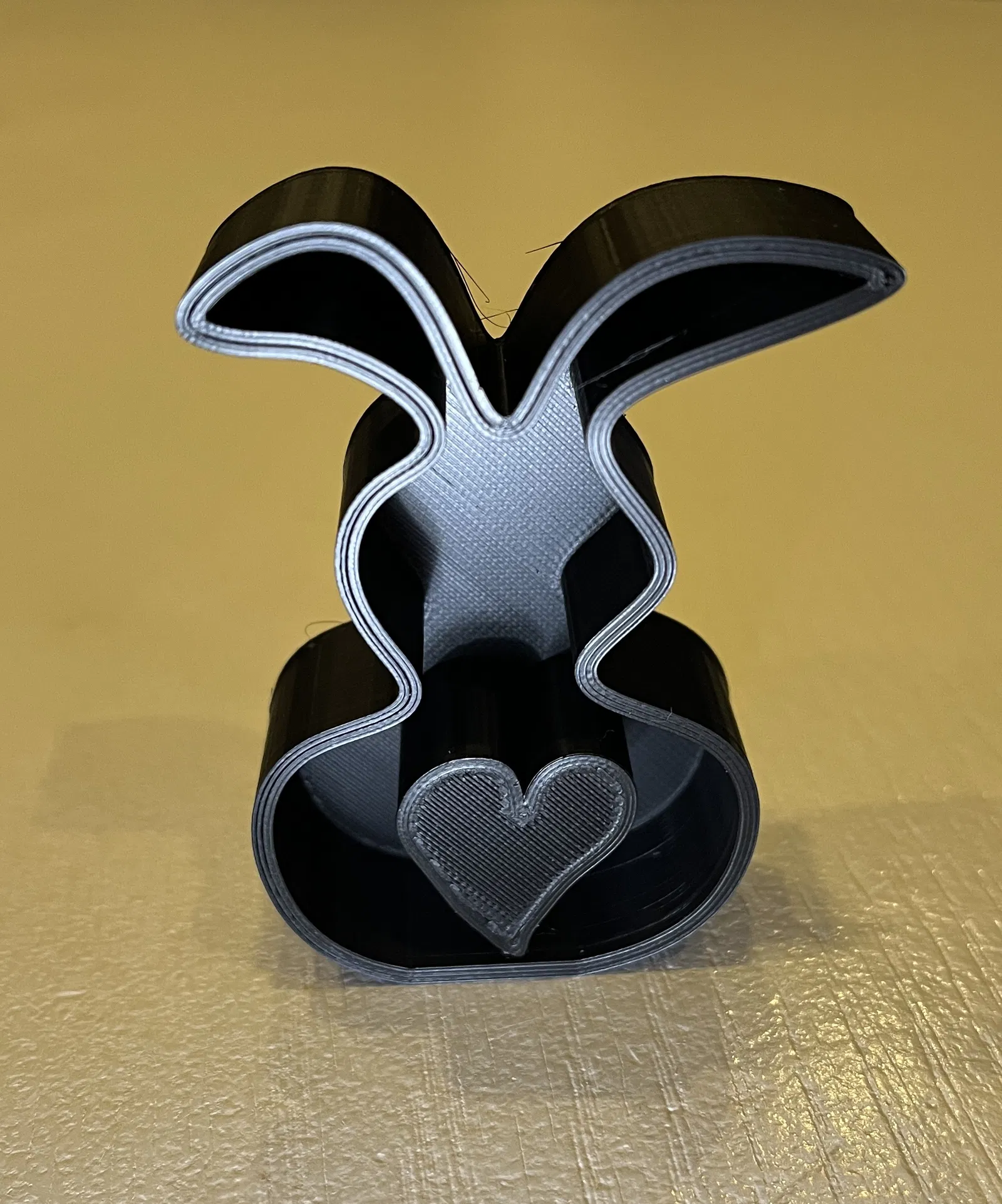 Một khuôn đúc nhỏ cho thạch cao (hoặc vật liệu tương tự) dùng dịp Phục Sinh: thỏ cầm trái tim với chữ “Happy Easter”. Có file thêm chân/đế để đứng vững và file tai lớn hơn để đúc được nhiều vật liệu hơn.