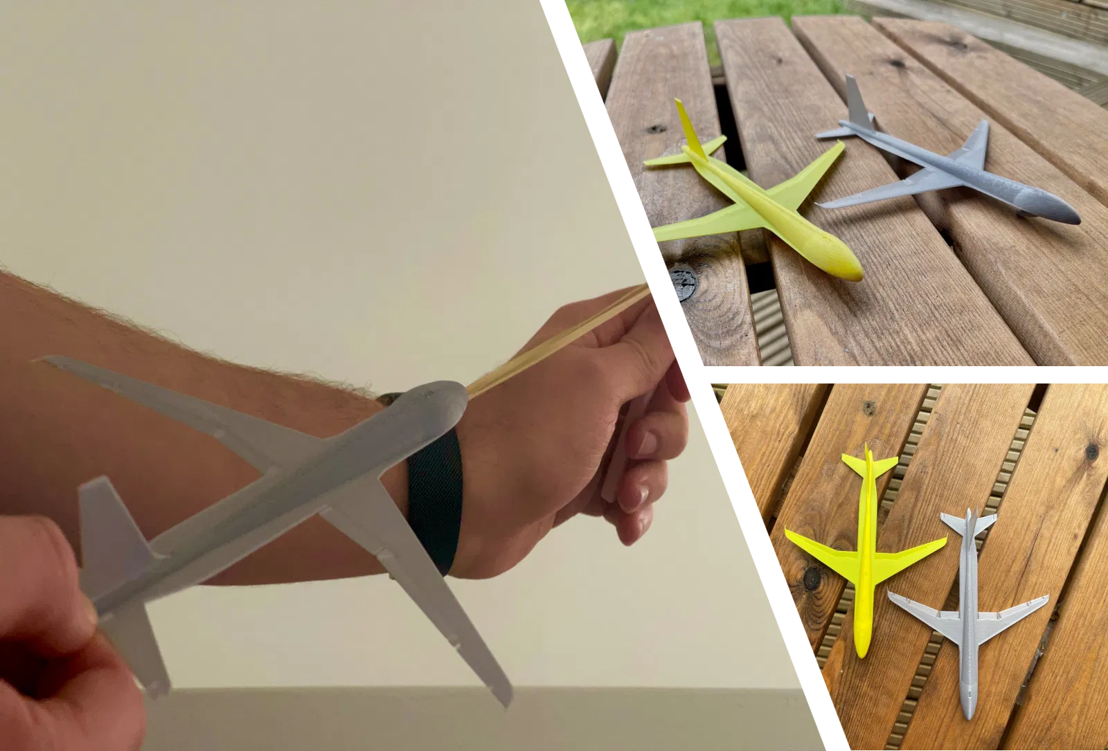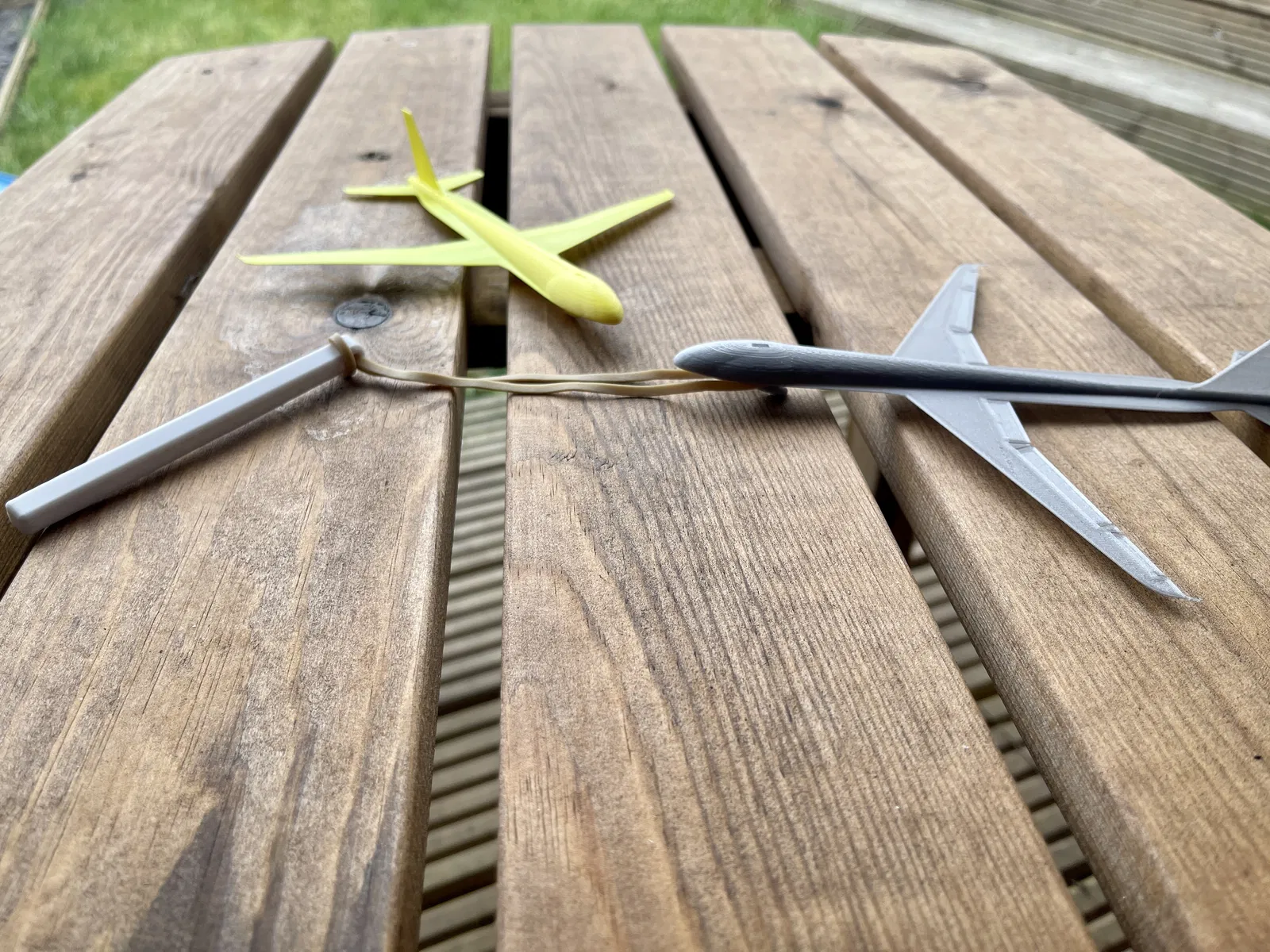 Cây que dùng để phóng máy bay có thể in ở 0.25mm với infill cao (20–25%).