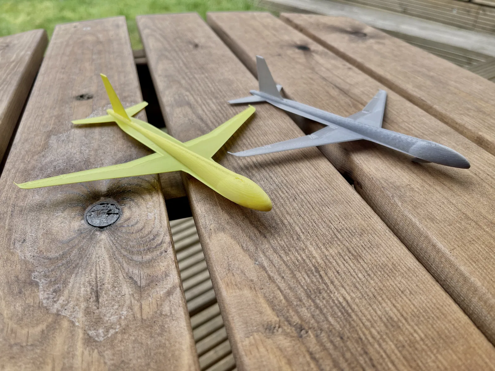 Glider lấy cảm hứng từ Airbus A320, in 3D gần như toàn bộ chỉ trừ 1 dây thun/rubber band. Tỉ lệ khoảng 1:355, tối ưu vừa khổ in 180×180×180mm (Prusa Mini). Khuyến nghị layer 0.1mm, infill thấp, không cần support.