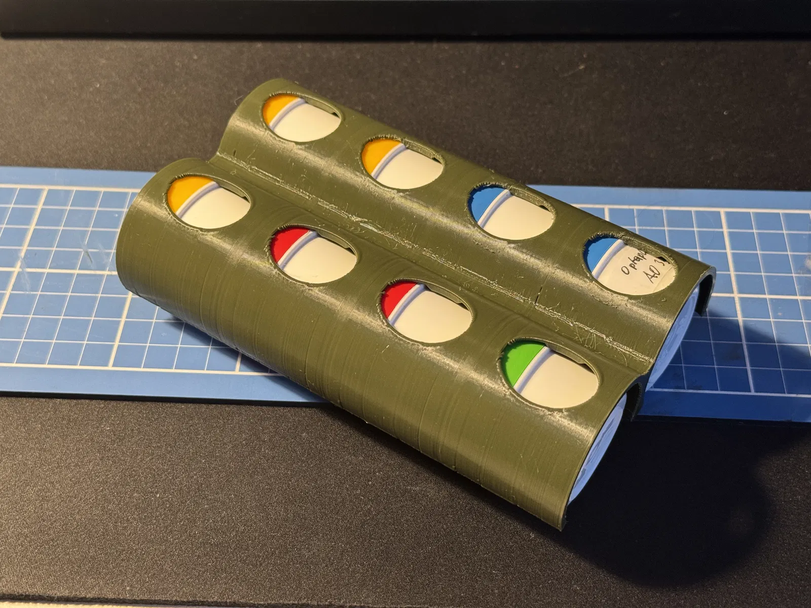 Carrier/khay đựng dành cho hũ nhựa 35ml nắp vặn (d45x35mm) để lưu trữ gọn và lấy ra dễ. In PETG để có độ dẻo “snap” vào/ra; có chừa độ rơ nên PLA cũng dùng được. Hợp nozzle 0,6mm, 0,4mm vẫn ổn.