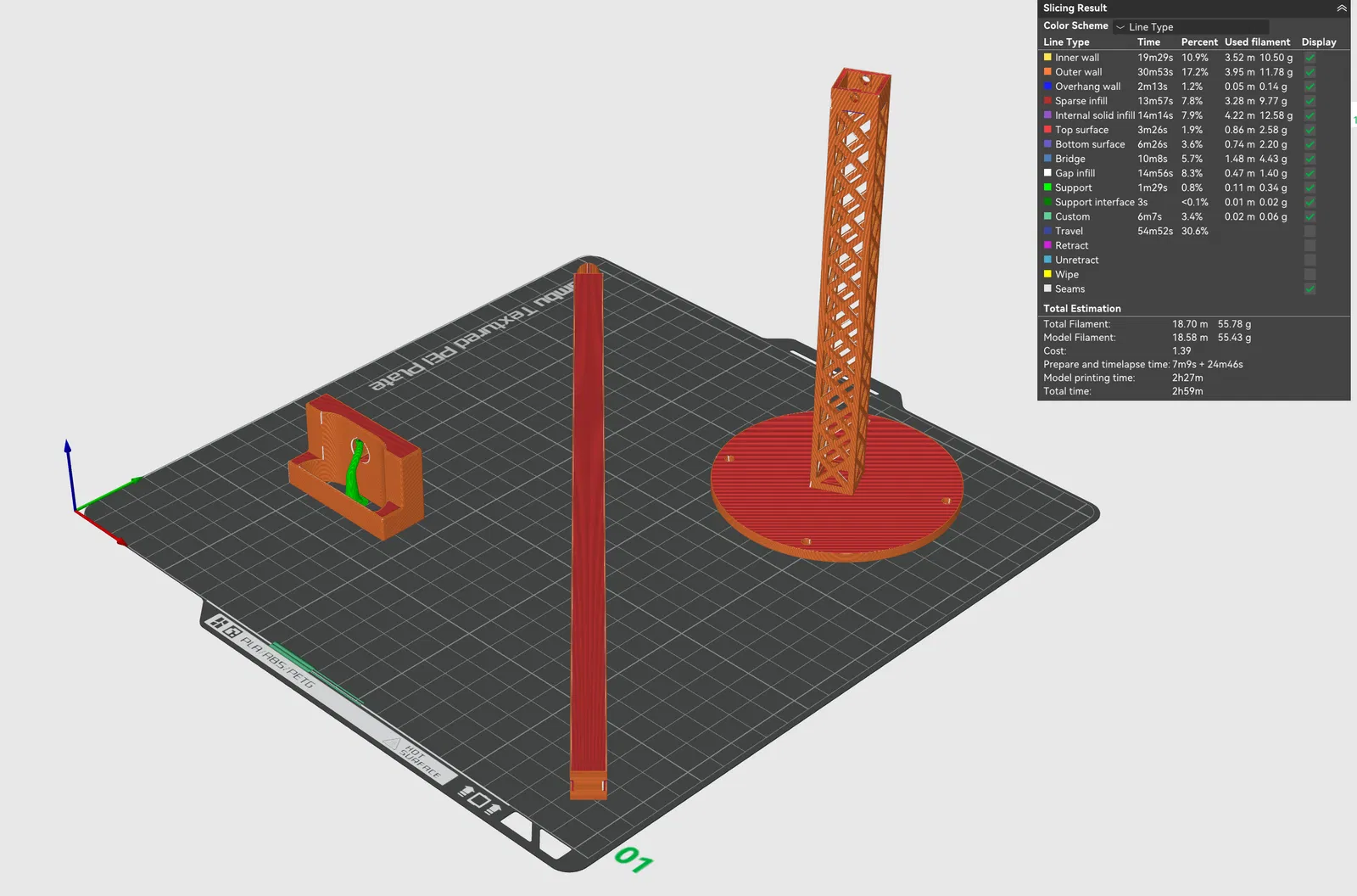 Đế vững với kết cấu lưới hình chữ nhật, cho độ bền tốt mà vẫn tiết kiệm filament.