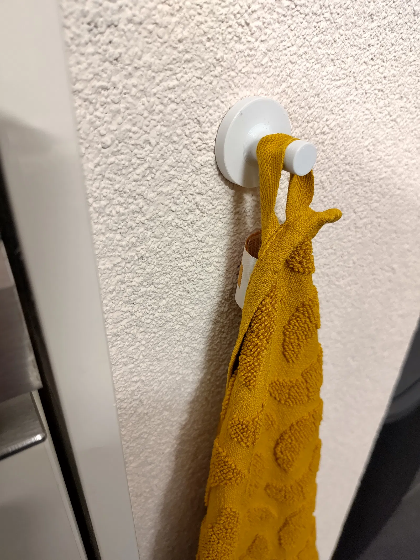 Móc treo khăn gắn kiểu keyhole slot, phù hợp khi vít đã bắt sẵn. Dễ in, không cần supports: chỉ cần đặt móc vào đầu vít rồi trượt xuống để khóa chắc chắn. In tốt với PLA, layer height 0.2mm.