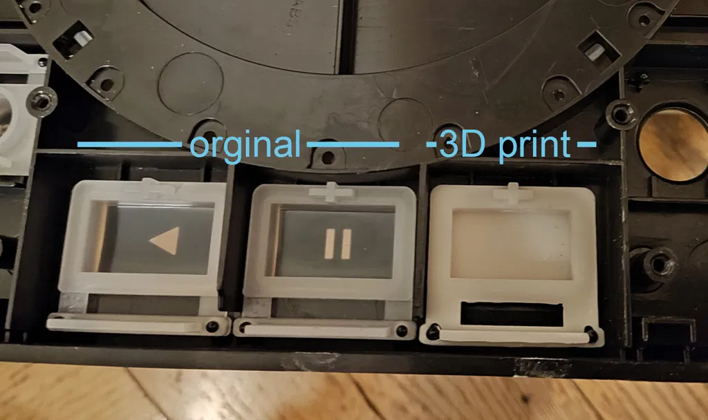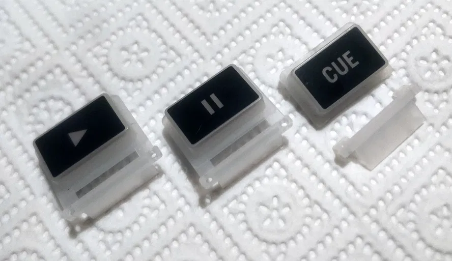 Numark thiết kế phần này không ổn lắm; mình đã bể tới 3 cái nút CUE rồi. Mình cũng có liên hệ một trung tâm sửa chữa, họ nói là nút này họ thay hoài vì rất dễ gãy. Mua 1 cái nút từ website ở trên thì khá mắc khi cộng cả giá linh kiện và phí ship. Vì vậy mình đã dựng một model 3D chuẩn của cái nút này để ai cũng có thể tải về, in và thay vào luôn. Kích thước y hệt nút play và pause, cộng thêm một chút gia cường ở điểm hay bị gãy. Nếu bạn lỡ làm bể một trong các nút đó, model này sẽ giải quyết được vấn đề.