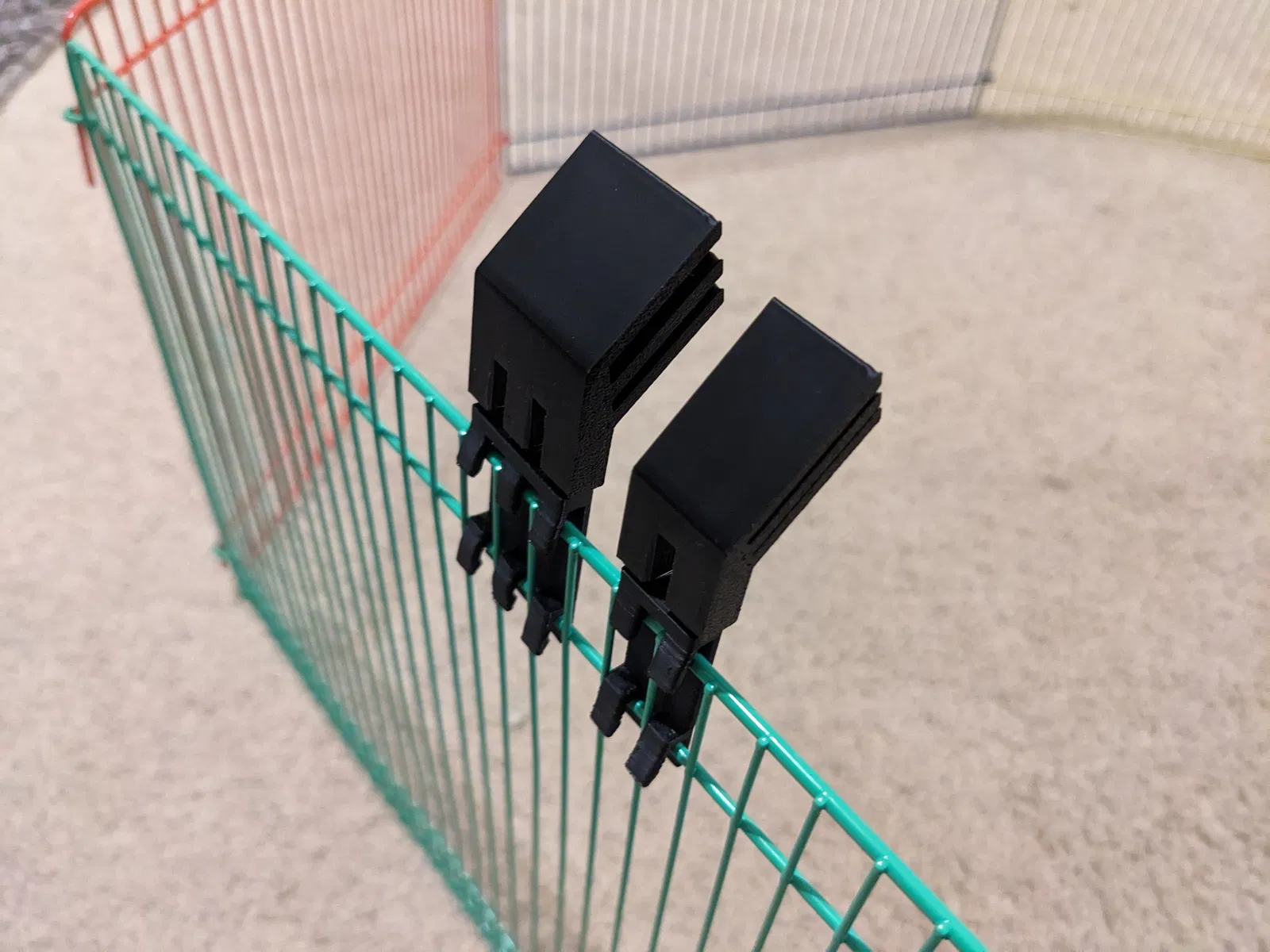Hamster Cage Clips là bộ kẹp 2 mảnh gắn lên thanh kim loại phía trên vách lồng, giúp nâng vách hoặc làm thêm mái. Có 2 kiểu: 2 chốt và 3 chốt, thiết kế để kẹp chắc và hạn chế rung lắc.