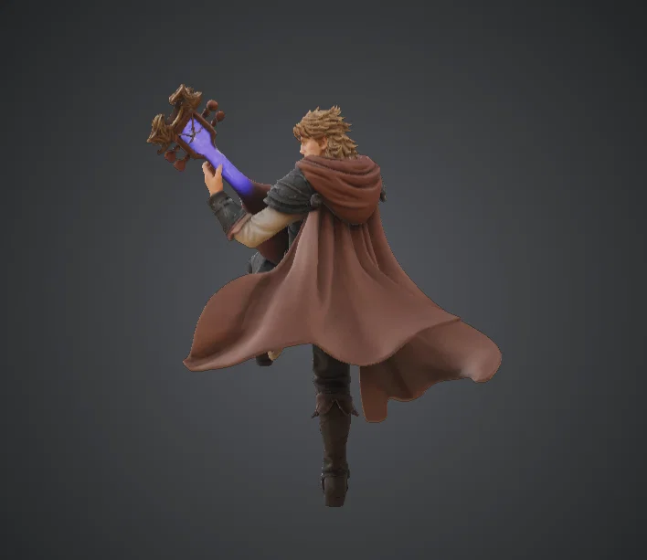 Mẫu Arcane Bard này bắt trọn nguồn năng lượng của một chàng nhạc công hát rong sẵn sàng xung trận ngay giữa màn biểu diễn, áo choàng tung bay phía sau khi anh đang gảy một cây đàn lute ma thuật với chi tiết cực kỳ tinh xảo. Tư thế đầy động lực, chân nhấc lên và tà áo choàng quét rộng tạo cảm giác chuyển động và nhịp điệu, làm cho mô hình như sống dậy với âm thanh và thuật pháp.