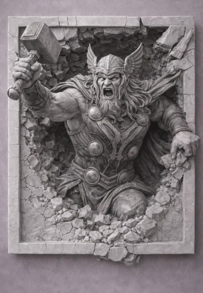 Mẫu “Thor 3d Picture” là một hình 3D về Thor theo phong cách Nordic/Avengers, nổi bật với biểu tượng búa của Thor. Phù hợp để in 3D làm tranh trang trí hoặc trưng bày theo chủ đề siêu anh hùng.