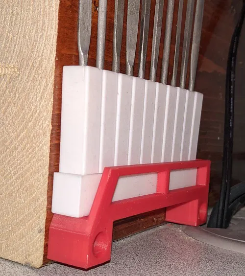 Bộ STL tay cầm và holder cho bộ needle file 10 món. Fit khít để giữ chắc, có thêm bản holder 102% nếu muốn dư khe. Hỗ trợ để bàn, gắn tường và pegboard/Skådis; có tùy chọn lỗ 20/40/80mm.