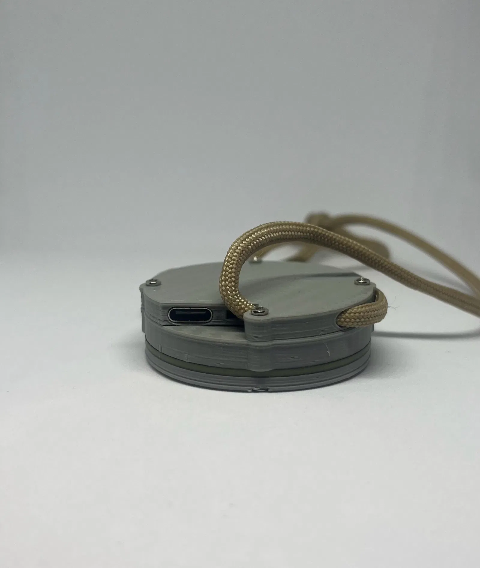 Mẫu đèn mini siêu nhẹ cho cắm trại: dùng kit đèn 5V để tạo đèn 5 x 1.5 cm, nặng chỉ 27g. Cảm ứng chạm 30 giây hoặc giữ sáng liên tục, có lỗ xỏ paracord/carabiner và sạc type-C.