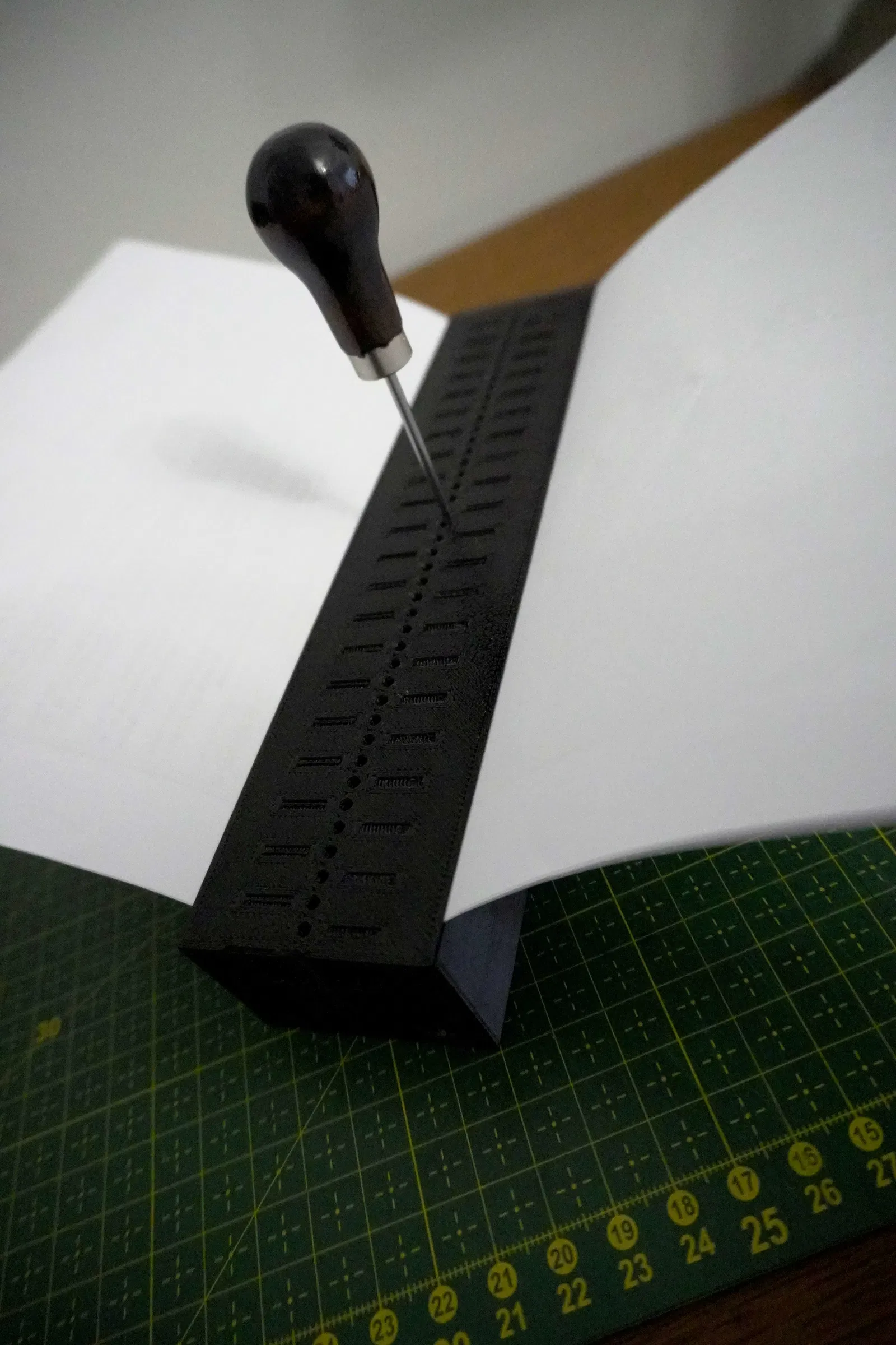 Cữ đục lỗ dùng cho đóng sách. Thiết kế gồm 2 phần để tương thích với tạp chí khổ A5 và A4.