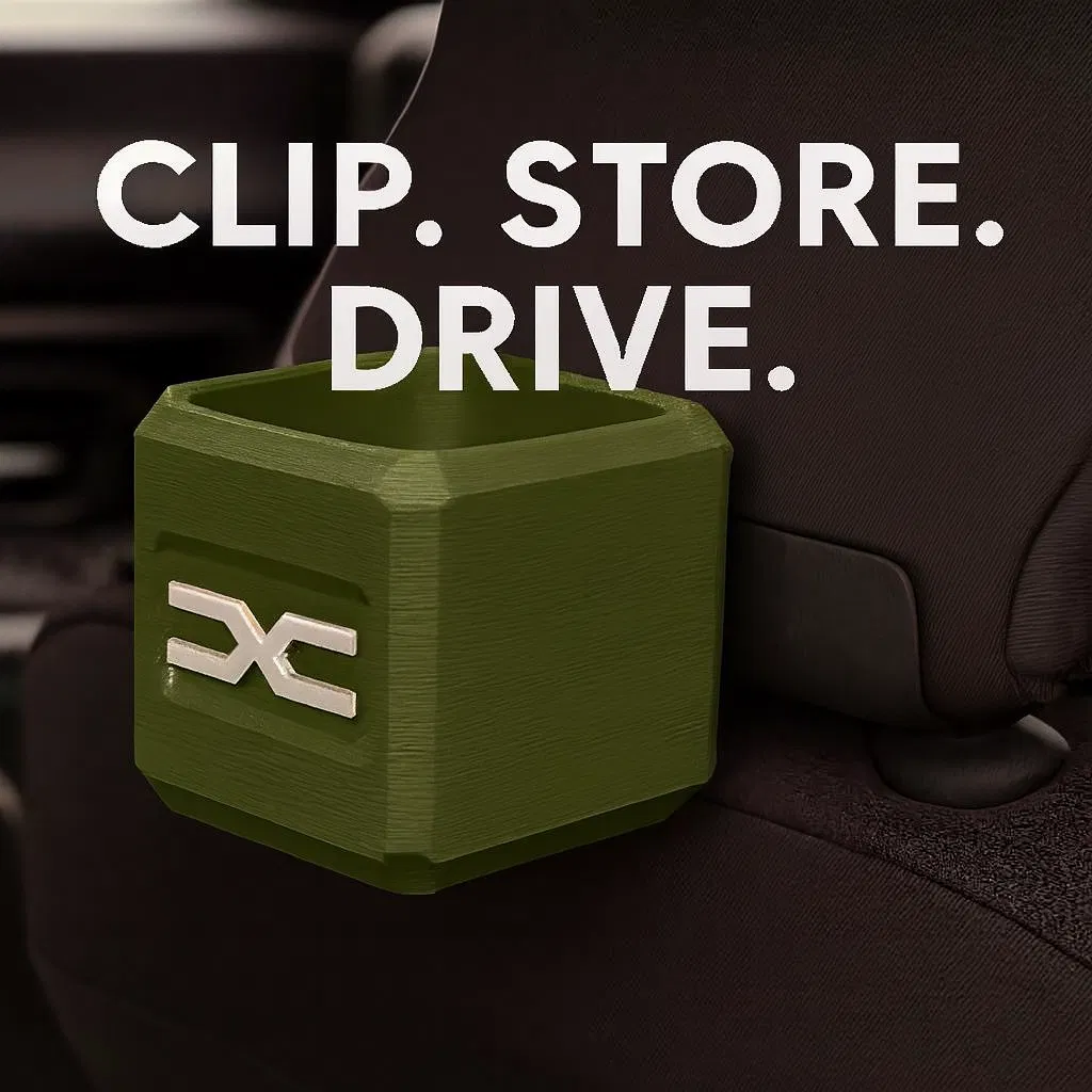 Khay để ly được thiết kế riêng này tương thích với hệ YouClip có trên các dòng xe Dacia. Sản phẩm gắn chắc phía sau tựa đầu (headrest) và mang lại giải pháp tiện lợi để để ly, chai nước hoặc mấy món đồ nhỏ khi đang lái xe. Mẫu có thiết kế hình học gọn gàng với cạnh vát (beveled edges) và logo âm (recessed), đồng thời được tối ưu cho in 3D FDM với bề mặt sợi in (filament texture) và đường layer nhìn rất thật.