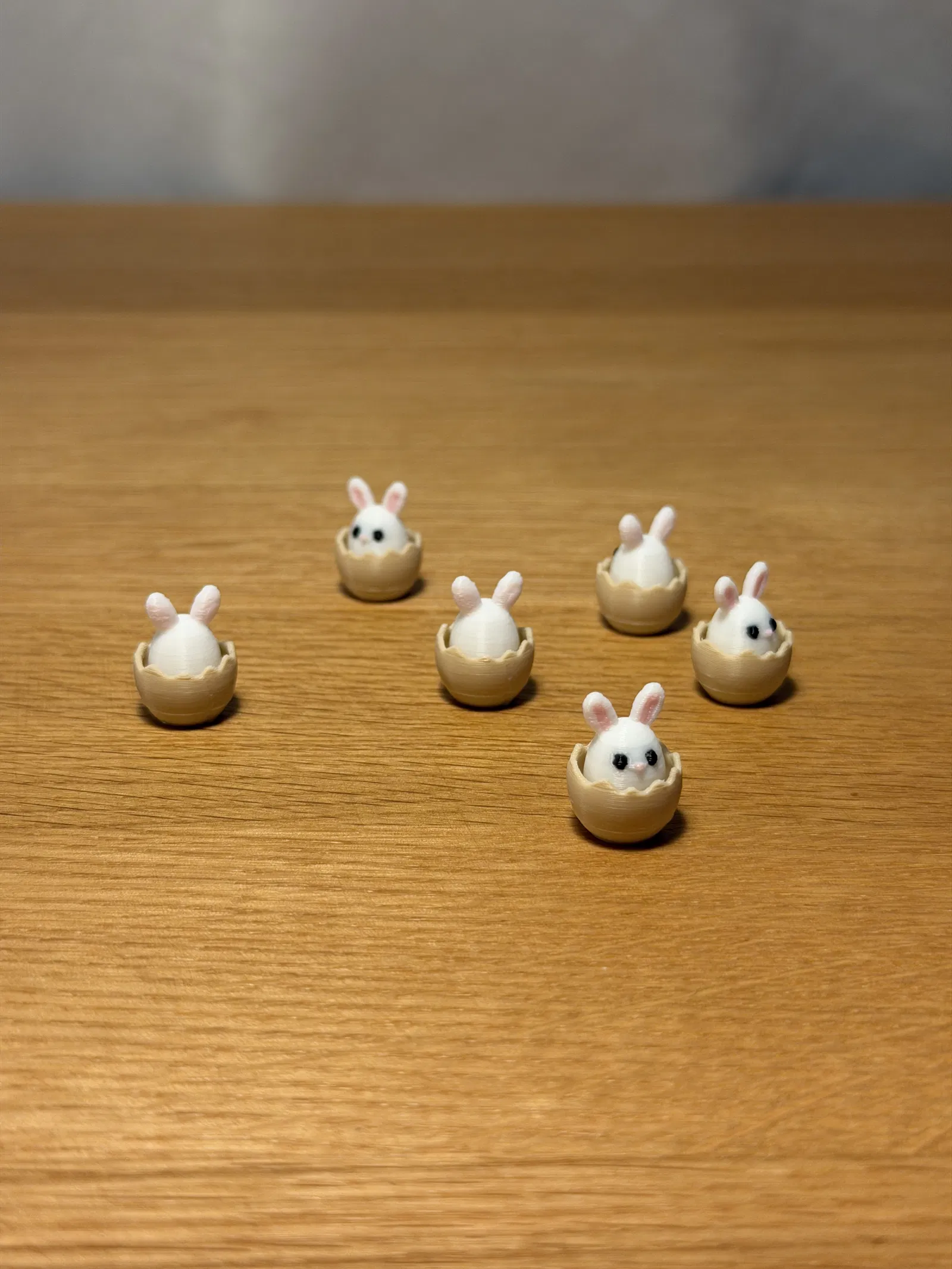 Chú thỏ mini ló đầu khỏi vỏ trứng, cao 18 mm. Phù hợp trang trí Easter, để bàn, làm quà hoặc sưu tầm miniature. Nên in layer height 0.12mm và chỉnh back seam position để đẹp hơn.