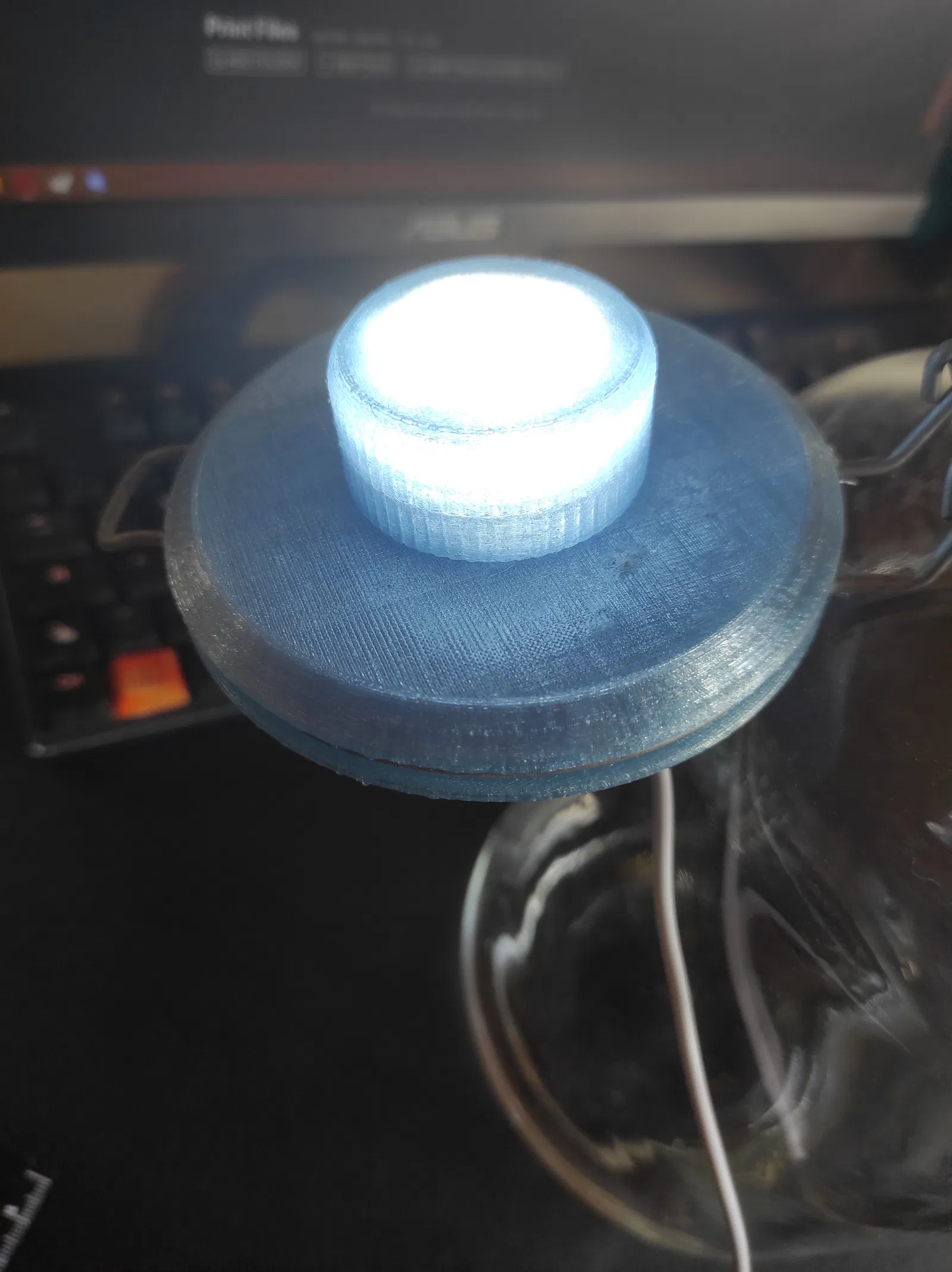 Thiết kế này lấy cảm hứng từ Baiosphere Terrarium Lamps. Mình dùng một module LED tròn loại tiêu chuẩn, nối thẳng với cáp USB có thể dim (chỉnh độ sáng). Tuy nhiên, nếu bạn rành điện tử hơn mình thì mình có kèm thêm một bản mẫu có lỗ để gắn potentiometer (biến trở) khi cần.
