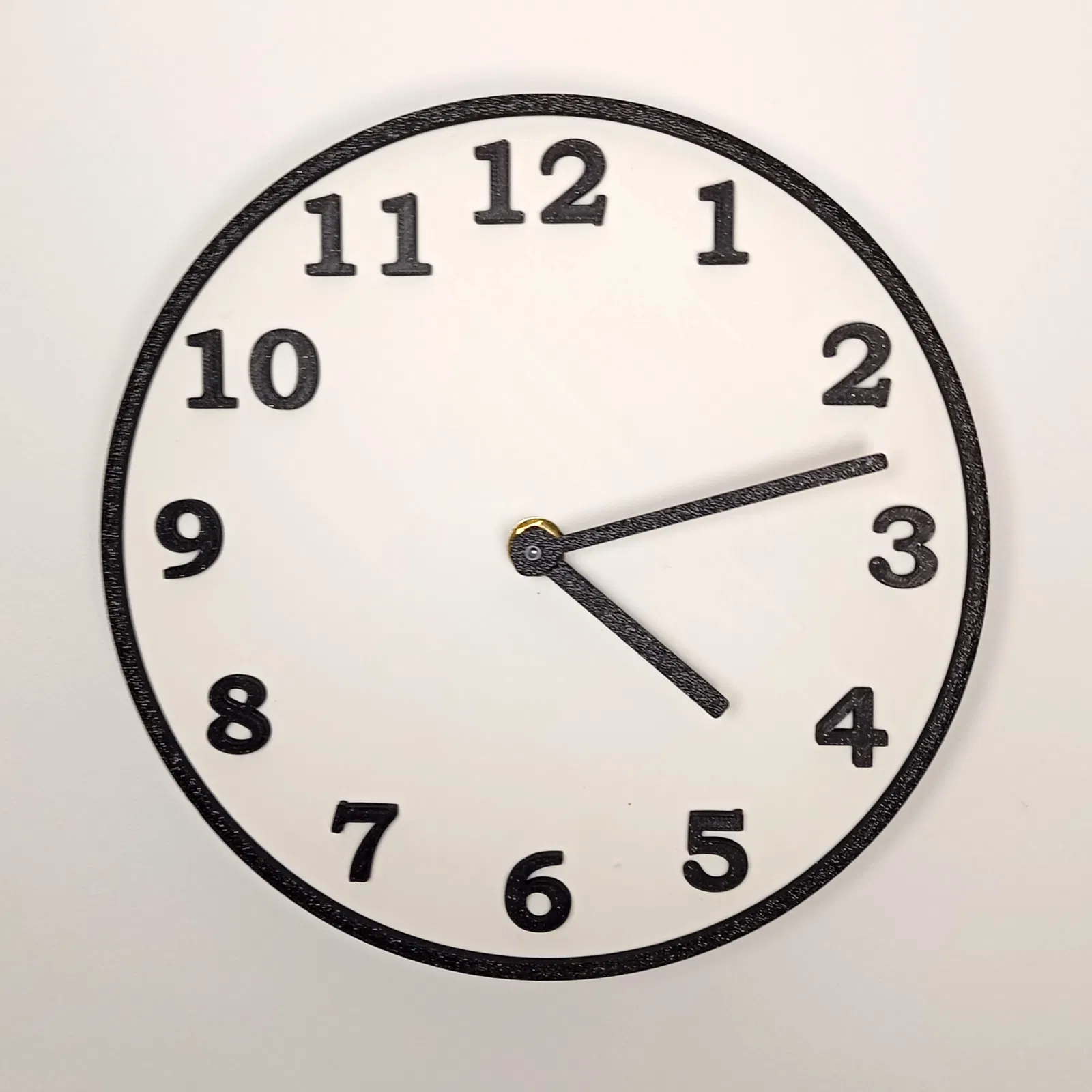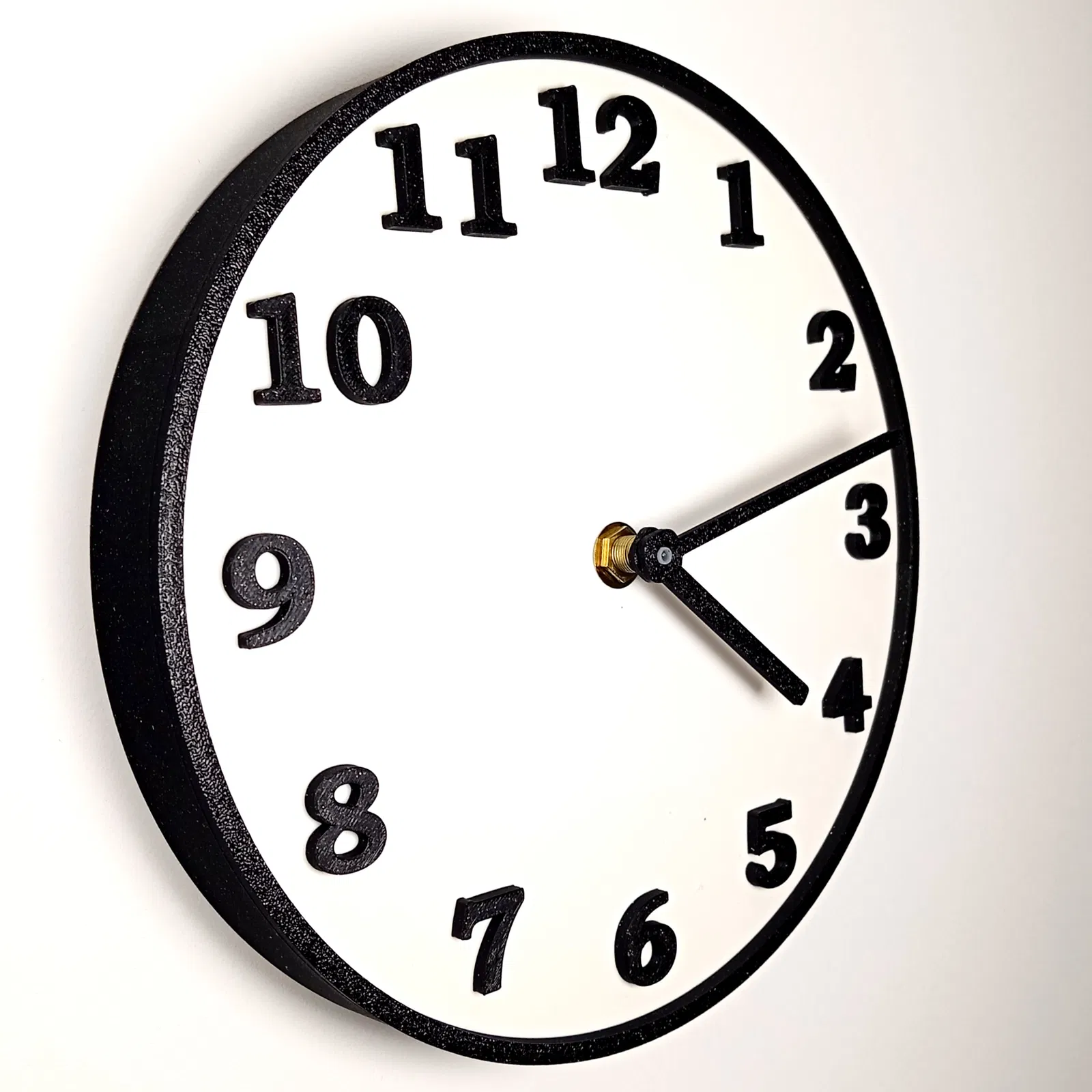 Đồng hồ treo tường tối giản với các con số nổi, thiết kế cho in 3D đa màu.