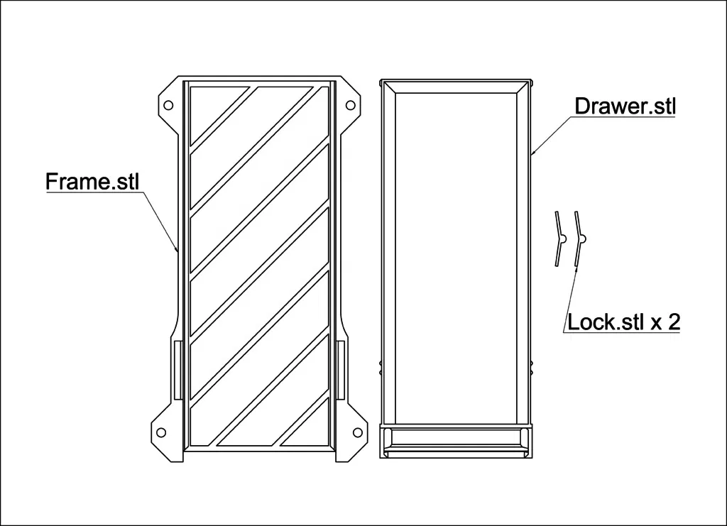 Mẫu ngăn kéo nhỏ gắn dưới mặt bàn giúp bạn cất gọn đồ linh tinh. Thiết kế in không cần supports, có cơ chế khóa với 2 trạng thái: đóng kín hoàn toàn hoặc kéo mở hết cỡ.