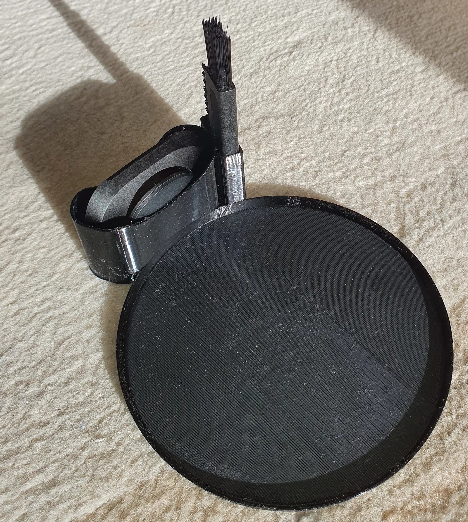 Trạm làm sạch của máy cạo râu Braun Series 7 không có chỗ để cất phụ kiện như đầu tỉa tóc (haircut head) hay bàn chải nhỏ. Khay/giá đỡ này đặt bên dưới trạm làm sạch và giữ gọn các món đó.