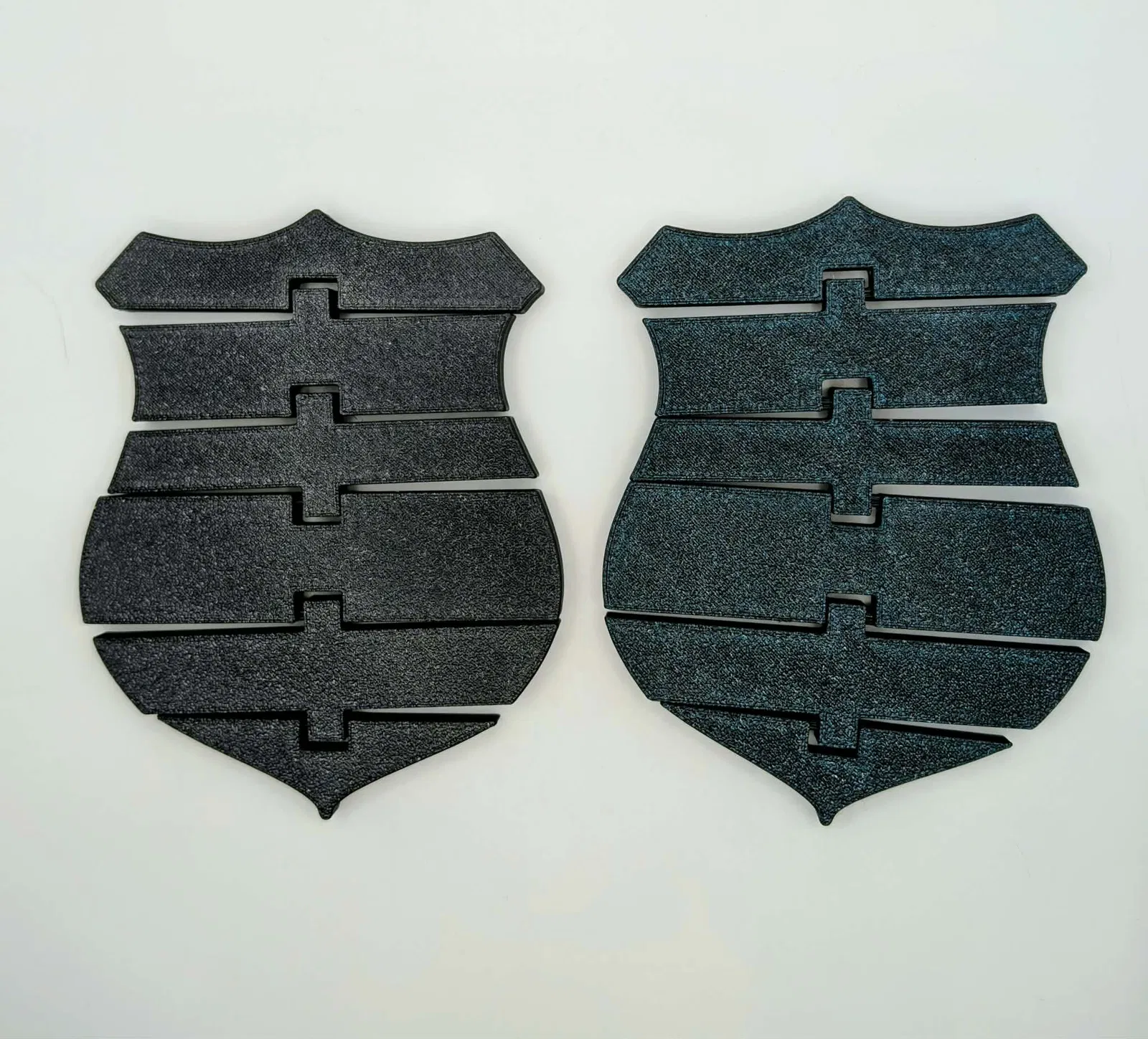 Huy hiệu cảnh sát Flexi dạng fidget khớp nối, in xong là các mảnh tự cử động mượt. Có 2 bản Standard/Super Flexi, hỗ trợ thêm text tuỳ biến. In PLA đẹp, không cần supports, phù hợp làm quà hoặc trưng bàn.