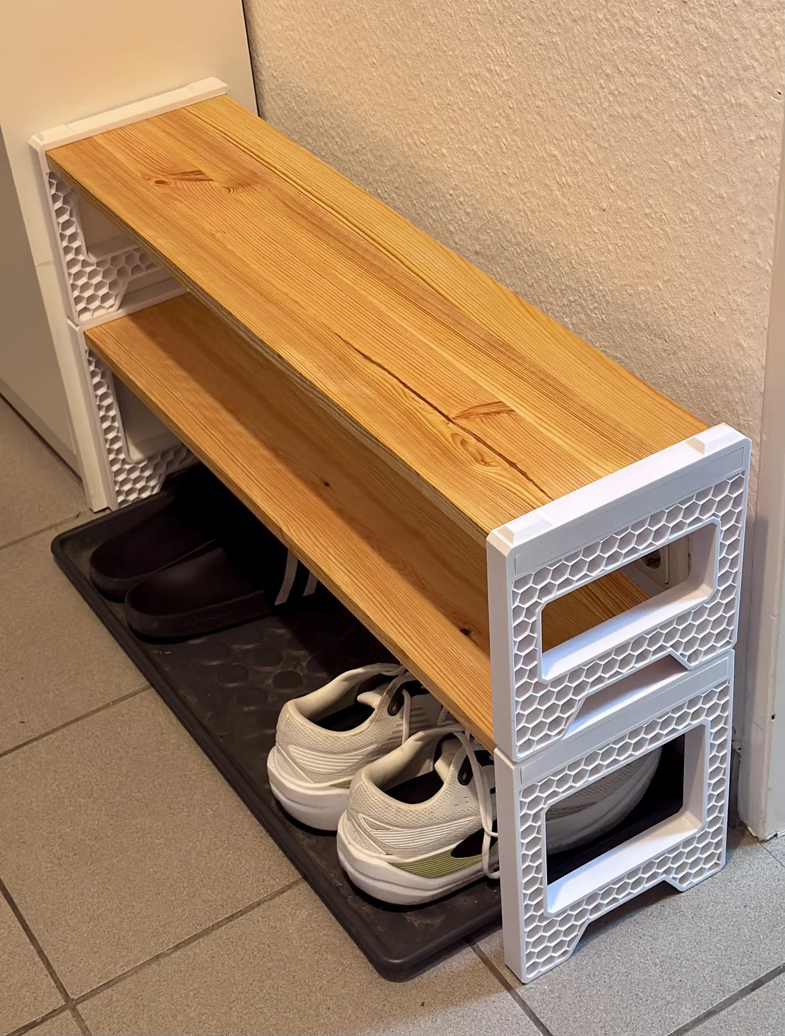 Mẫu kệ giày xếp chồng (metric) được chỉnh từ thiết kế gốc, tăng thêm 5cm chiều cao. Tổng chiều cao hiện tại là 26cm, phù hợp khi cần khoảng trống lớn hơn cho giày hoặc sắp xếp gọn gàng.