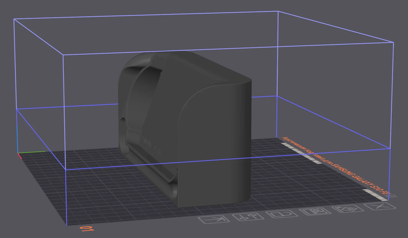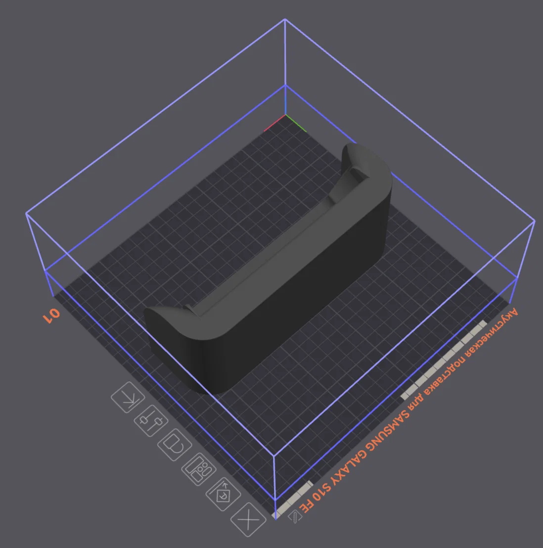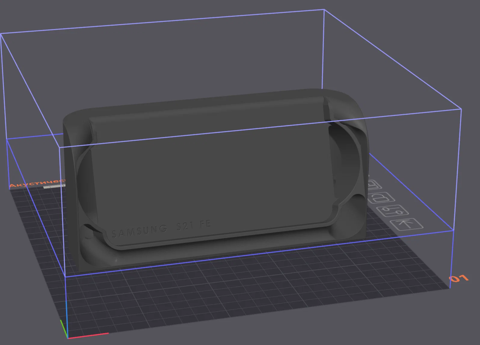 Mẫu đế kê âm học dành cho Samsung Galaxy S10 FE. Mình in bằng PETG, không cần support, thiết lập layer 0,16 mm để bề mặt mịn và chi tiết rõ.