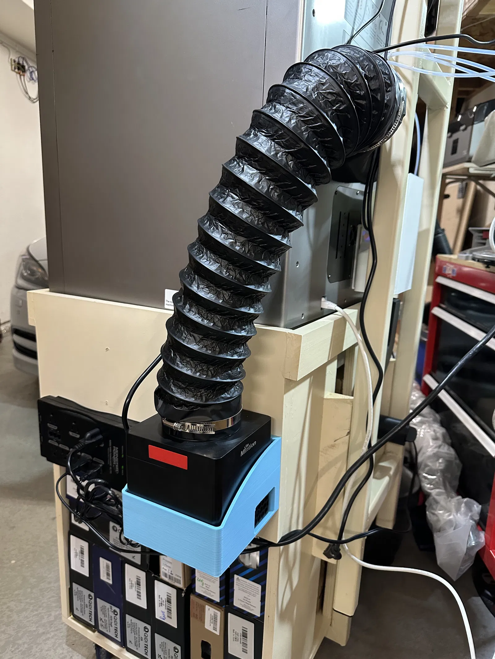 Hệ thống lọc không khí cho máy in 3D Minition (https://www.amazon.com/dp/B0GF872KRJ?ref=ppx_yo2ov_dt_b_fed_asin_title) đi kèm các adapter cho BambuLab. Để gắn qua các máy in khác thì bạn cần một adapter. Mình làm cái này cho QIDI Plus4, nhưng thiết kế cũng đủ “universal” để fit được nhiều máy khác nữa.