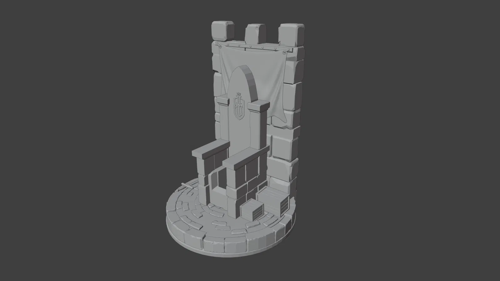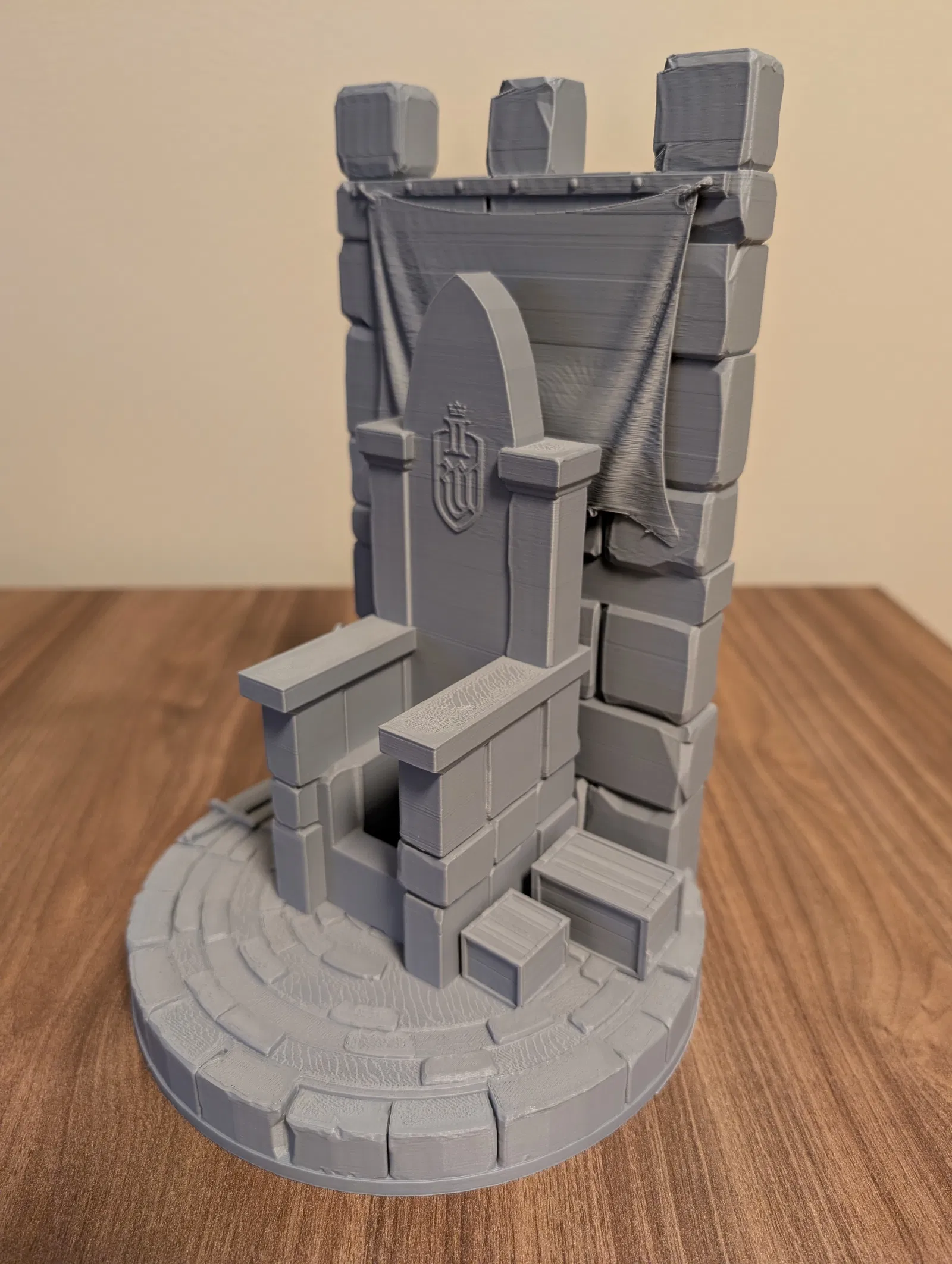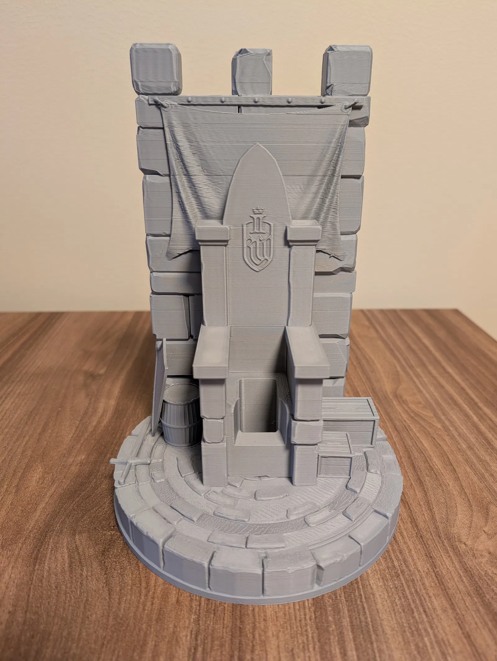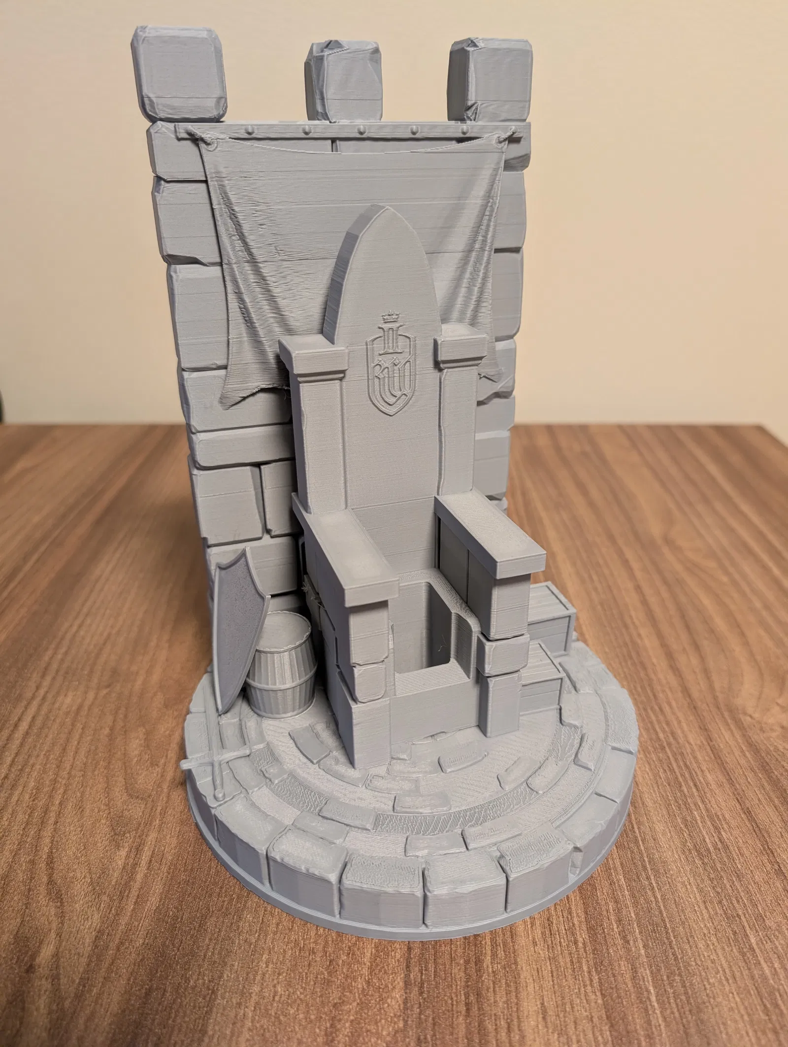 Mình in với 3 walls và 3% gyroid infill bằng PLA matte, thấy ổn với nhu cầu của mình. Phần cảnh chính và cái ngai in “print in place” là được, không cần lắp ráp gì thêm. Support thật ra chỉ cần cho món phụ kiện thanh kiếm (tùy chọn). Bạn muốn in bao nhiêu phụ kiện cũng được rồi dán keo lên phần đế để hợp gu của bạn.