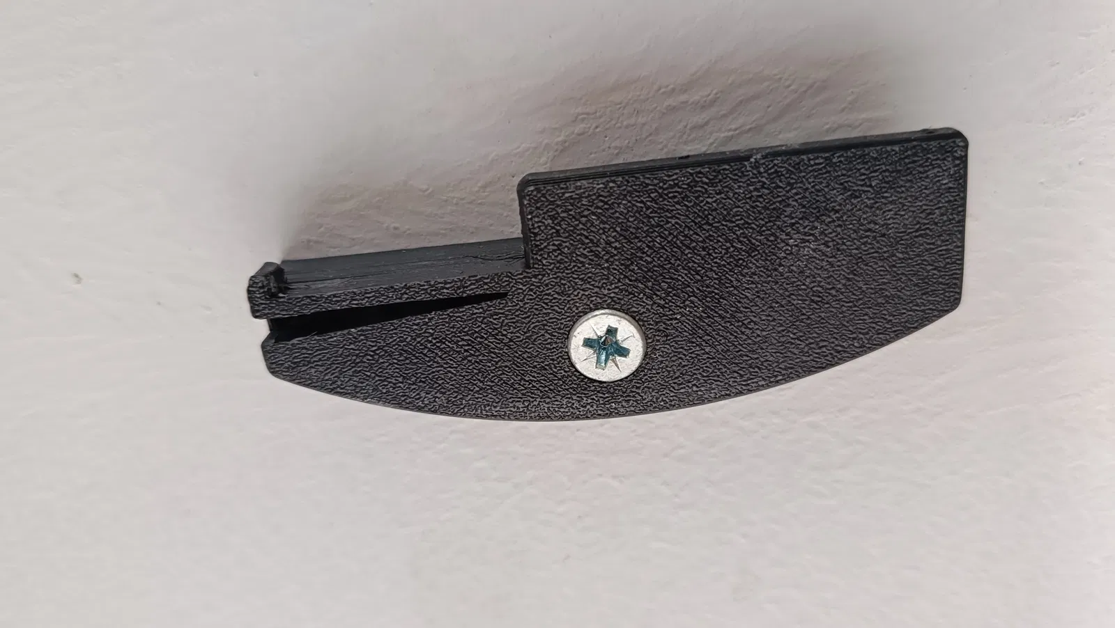 Mỗi ngàm được gắn độc lập bằng một con vít. Loại vít tùy theo vật liệu trần — dùng vít gỗ cho trần/dầm gỗ, tắc kê tường thạch cao (drywall anchor) + vít cho trần thạch cao, hoặc tắc kê bê tông cho trần bê tông.