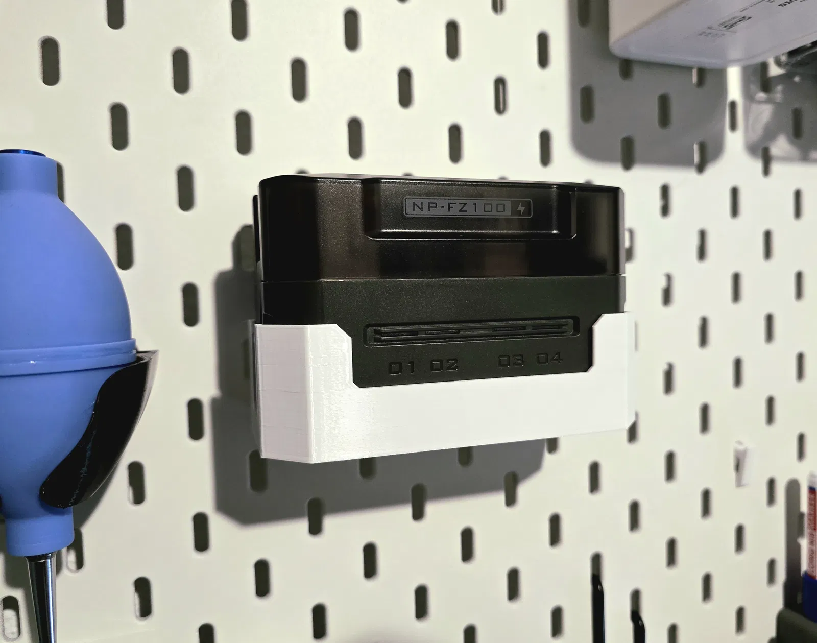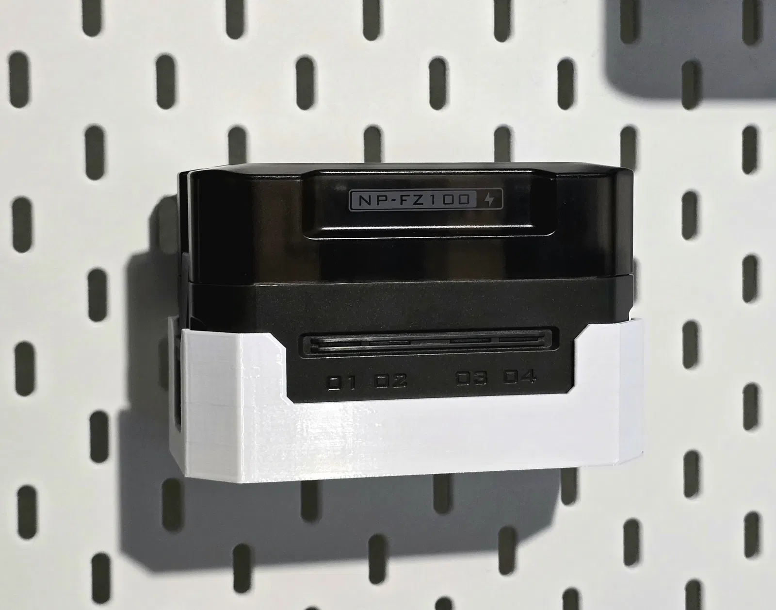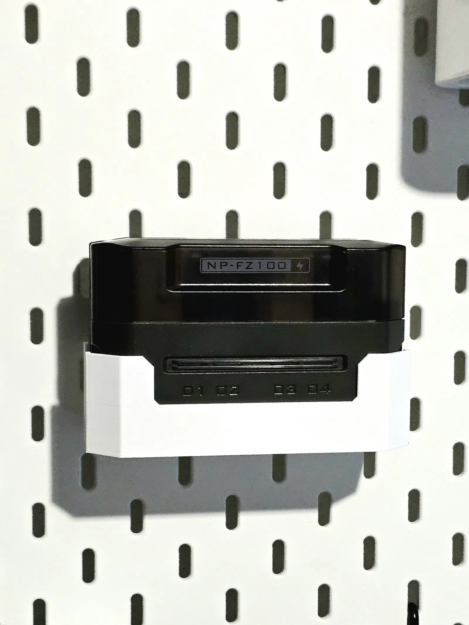 Ngàm/giá đỡ sạc pin máy ảnh TILTA Portable cho bảng peg IKEA Skadis, dùng hệ T-clip để đạt độ chắc chắn tốt nhất và dễ in.