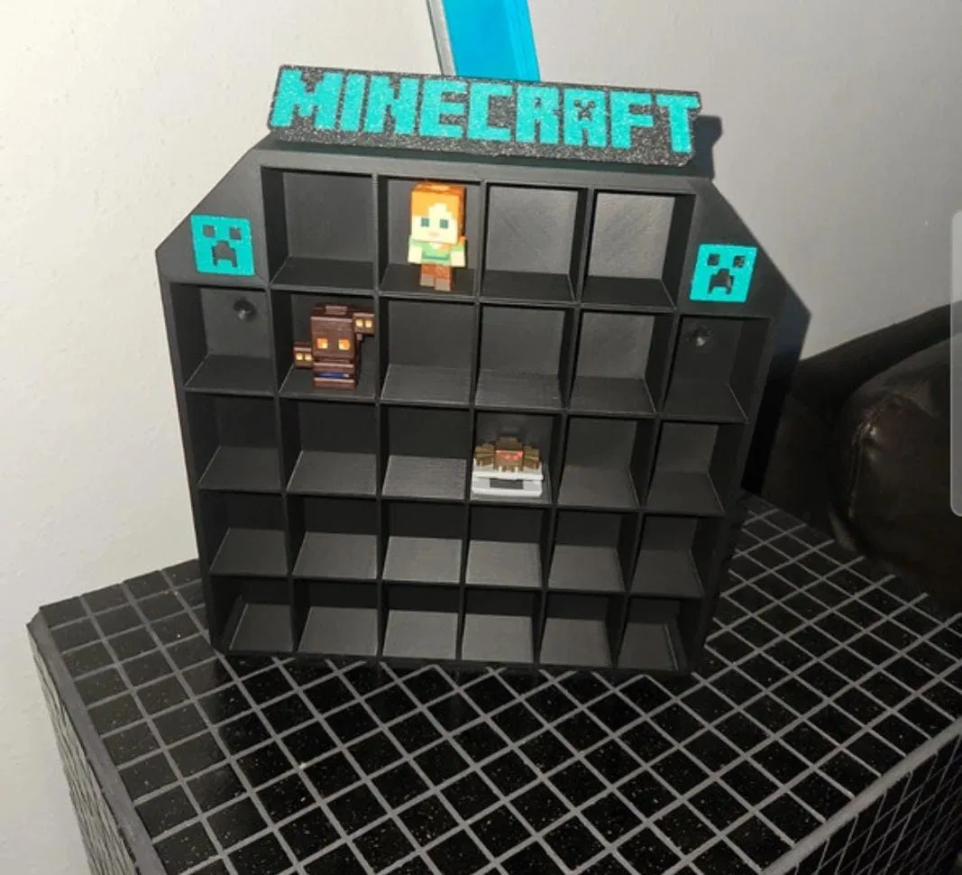 Thiết kế theo kiểu lưới (grid) với nhiều ô riêng biệt, lấy cảm hứng từ phong cách khối vuông đặc trưng của game. Mỗi ô rất hợp để đặt đồ chơi Kinder Joy, mini figures, hoặc các món nhỏ để trưng bày gọn gàng và nhìn bắt mắt.