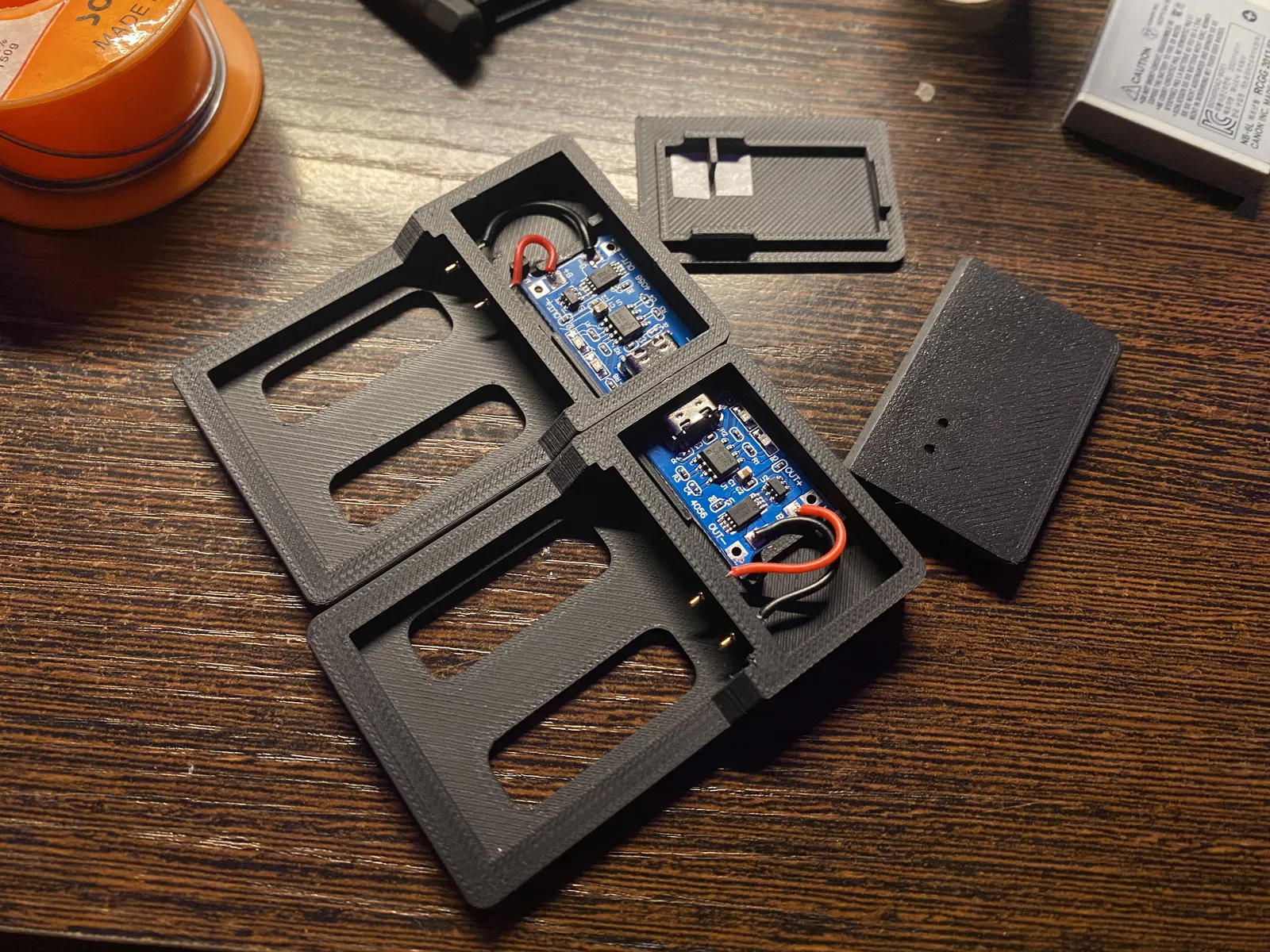 Mẫu 3D bộ sạc pin cho Panasonic VW-VBJ10, thiết kế lắp ráp không cần keo. Bạn chỉ cần chuẩn bị pogo pins 6mm, module sạc Li-ion TP4056 type-C và một ít dây điện để hoàn thiện.