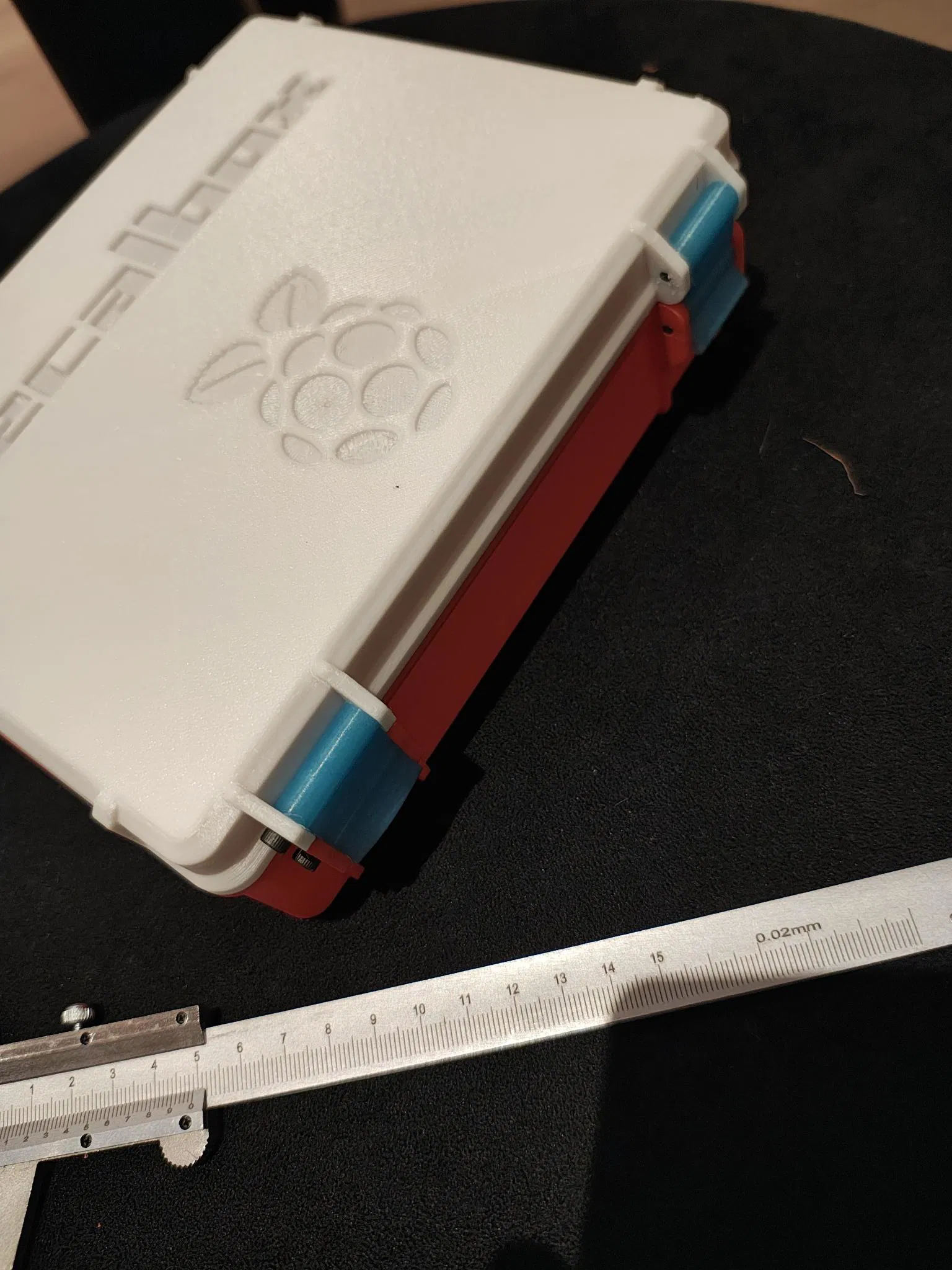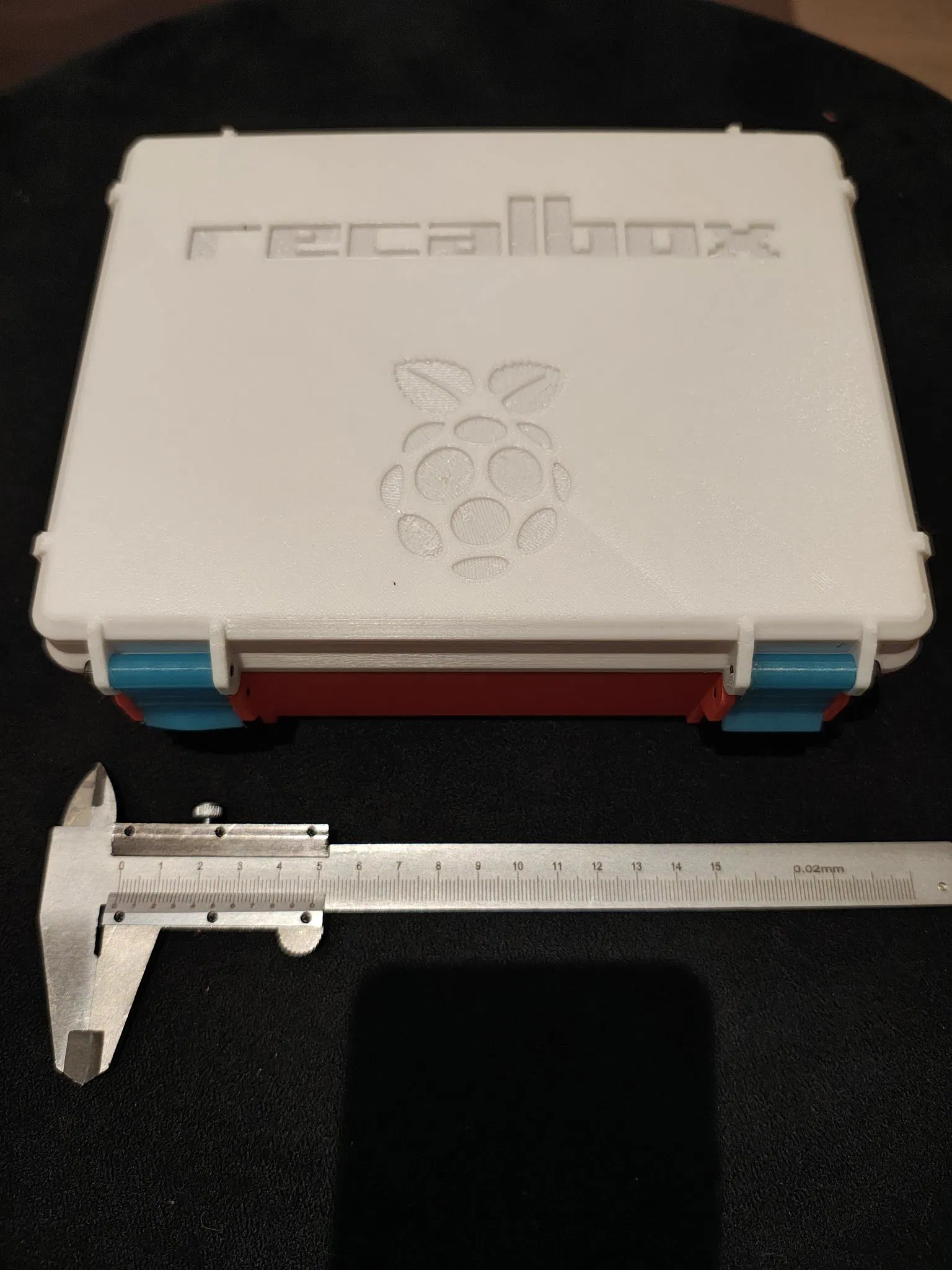 Hộp lưu trữ cho Raspberry Pi kèm tay cầm chơi game, có chỉnh sửa nắp để tạo phần lõm (negative imprint). Dự án vẫn đang hoàn thiện, dự tính gắn Pi vào trong hộp và làm thêm DIY keyboard.