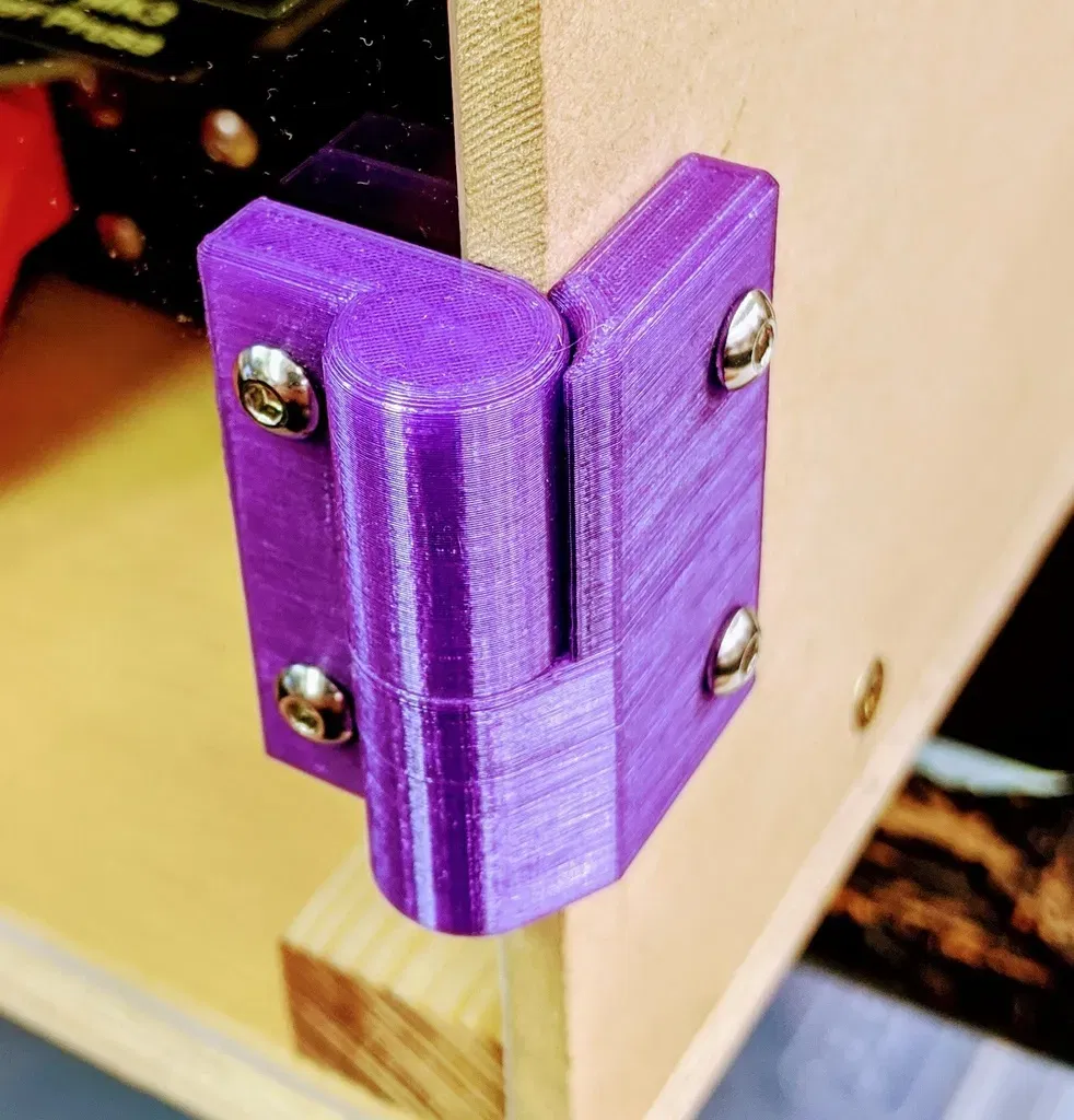 Bản lề cửa cho vỏ máy in 3D. Được thiết kế cho vật liệu 6 mm hoặc 1/4 ". Với bản lề này, cửa có thể tháo rời.