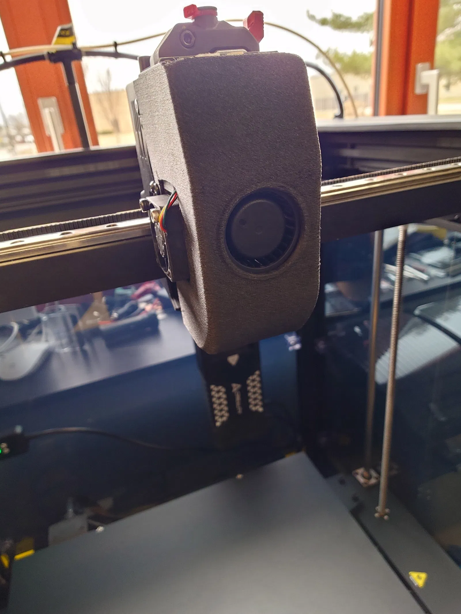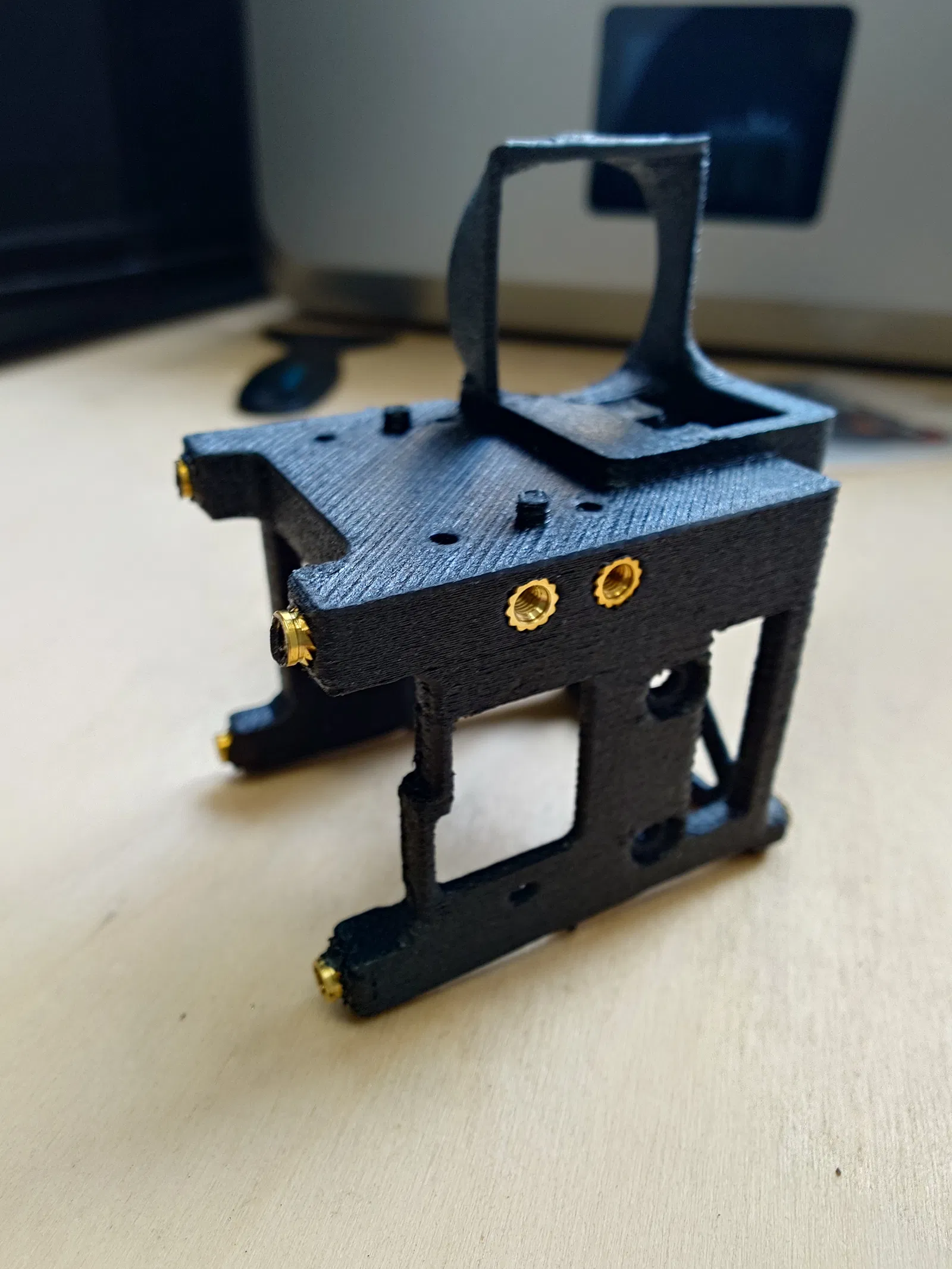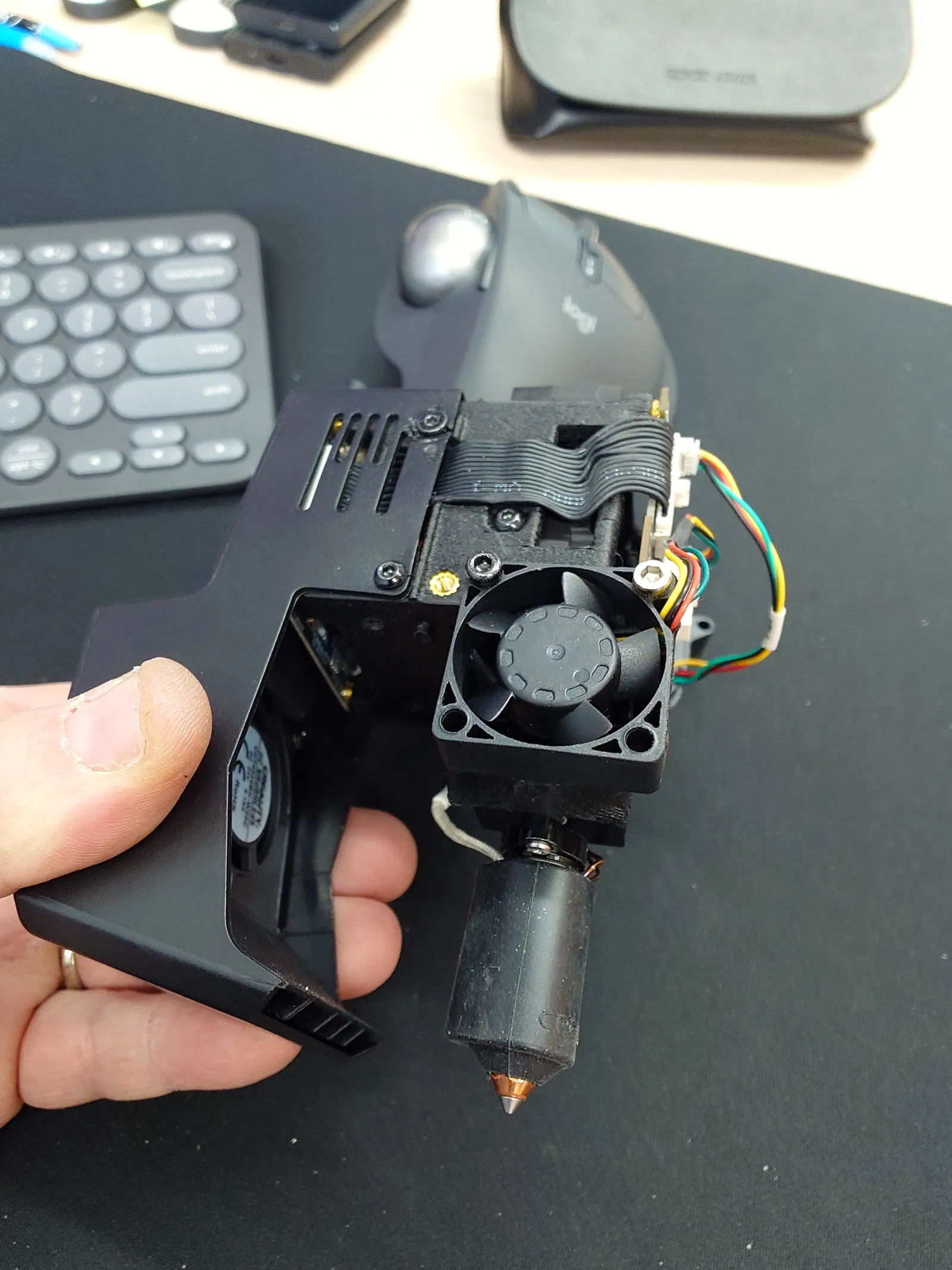 Hãy in ngược (upside down) để bề mặt quan trọng nhất của phần tiếp xúc hot end—mặt trên phẳng nằm ngang—được đẹp và chuẩn. Mình chọn vật liệu PPA-CF để đạt độ cứng và khả năng chịu nhiệt tốt nhất.