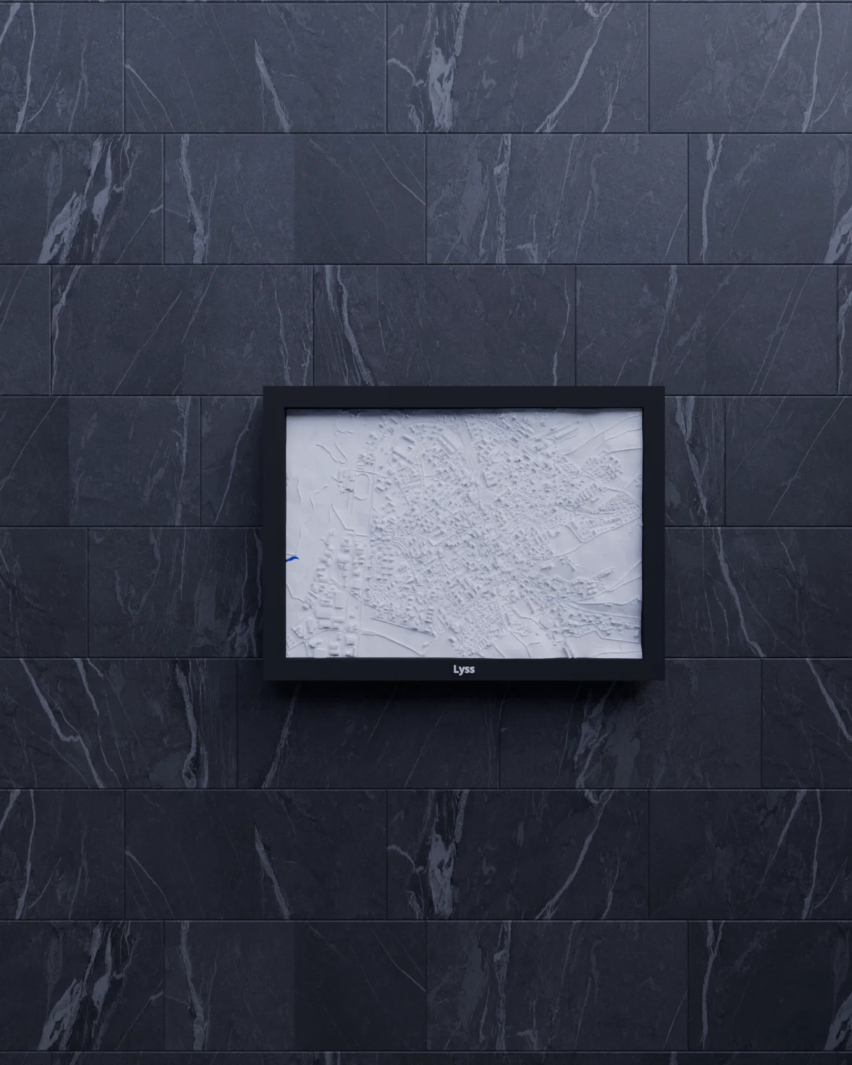 Mô hình thu nhỏ địa hình Lyss (Thụy Sĩ) dựa trên dữ liệu địa lý thật, thu nhỏ khu vực 2.392 km x 1.671 km thành 170.5 x 119.5 mm. Có STL/3MF, nhiều tùy chọn khung, kèm profile in tối ưu.