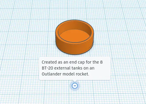Nắp chụp (end cap) cho 8 bình BT-20 của tên lửa mô hình Outlander, tỉ lệ 1:1 theo Estes Outlander. Khuyến nghị in trên mặt kính để bề mặt ngoài mịn. Lắp vừa bên trong ống thân Estes BT-20.