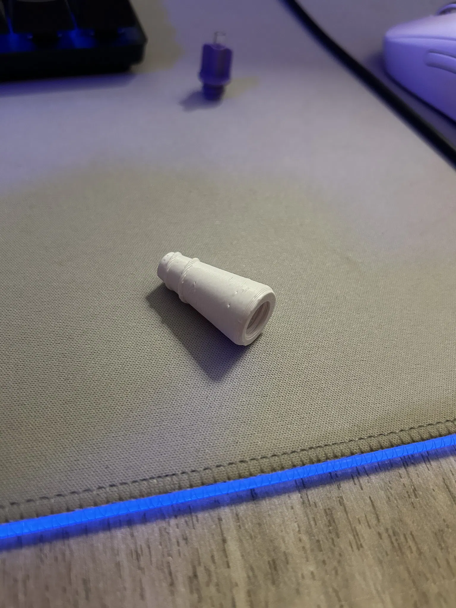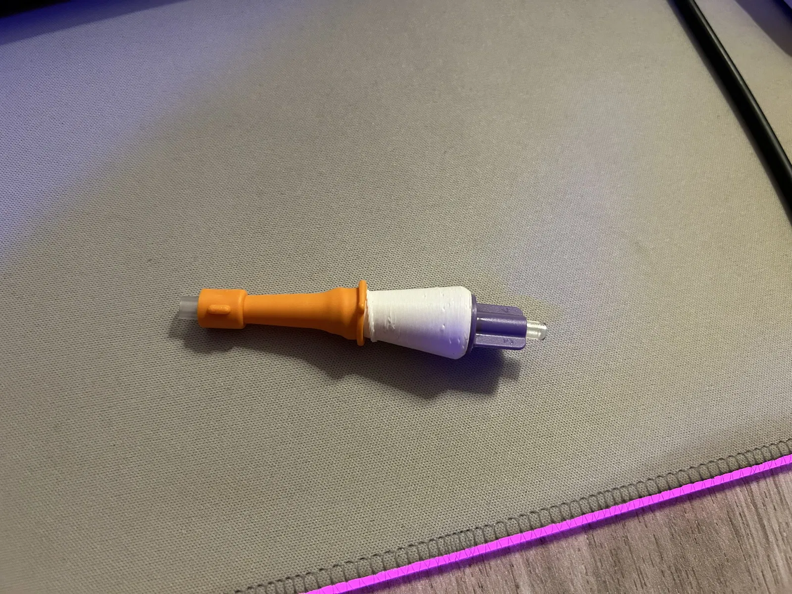 Mình đã tạo một cái adapter cho bộ dây bơm nuôi ăn enteral của B Braun – hệ Enteroport. Bạn có thể vặn đầu của bộ administration system vào adapter rồi cắm vào một ống thông mũi-dạ dày (nasogastric/ng) thông thường. Nó tạo độ kín rất ổn, và phần ren phù hợp cho hệ EnFit.