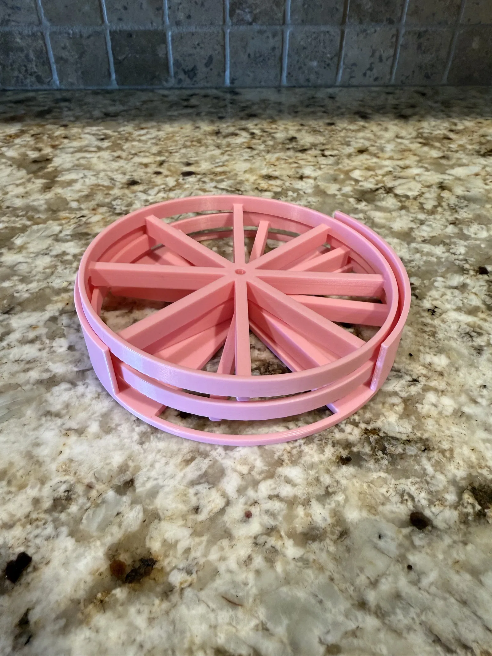 Mình đã xem và in thử khá nhiều mẫu giá úp ly và chai (cup and bottle dryer) trên Printables nhưng không cái nào thật sự hợp nhu cầu của mình. Mình cần một bệ thật vững, với luồng gió lưu thông mạnh bên dưới để làm khô được những chai nước lớn nhất ở nhà. Bộ model này gồm một bệ phơi (dryer platform) và một cái holder để giữ 2 bệ. Các bệ có gờ (lip) xung quanh để chai không bị trượt rớt khỏi mép.