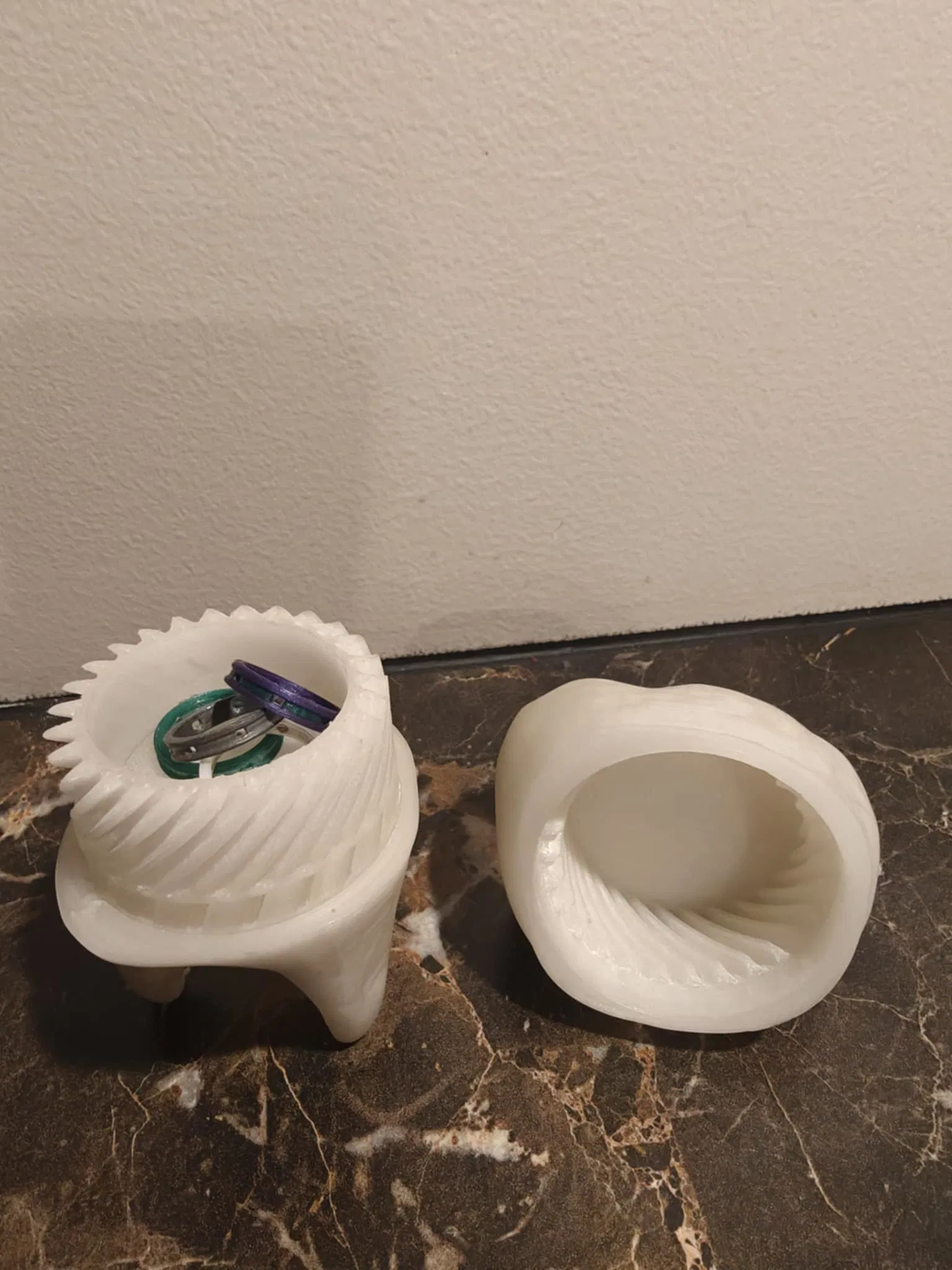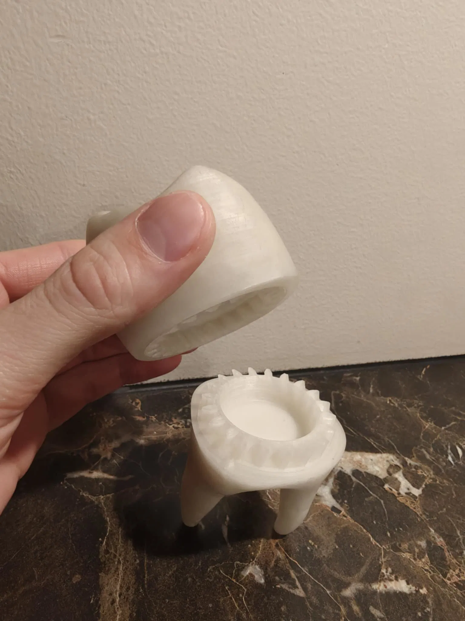 Mẫu “Hidden compartment toth” là một chiếc răng (tooth) có khoang chứa đồ bên trong: 1 khoang dễ thấy và 1 khoang bí mật. Dung sai khá sát, nên nên in high detail; có thể cần chà nhám nhẹ để khít.