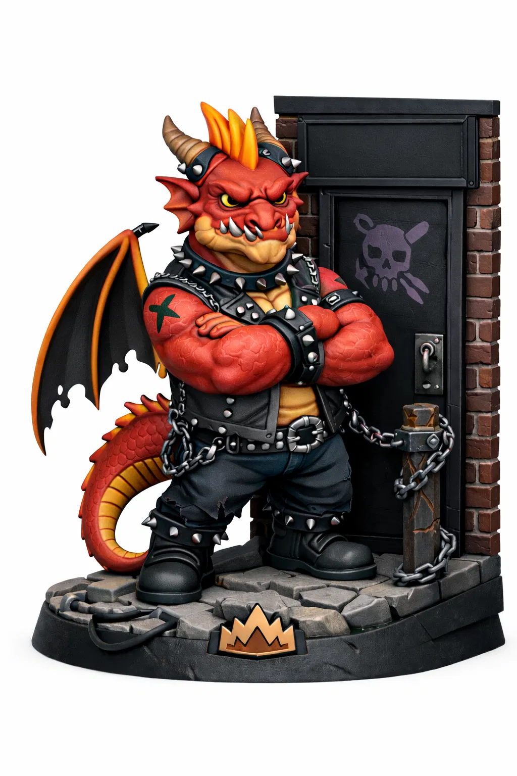 Scorch là figurine rồng punk nóng tính làm bảo kê hộp đêm—hợp cho D&D, tabletop encounter, hoặc trưng trên bàn/kệ. Dáng đứng chắc, cánh gập, thần thái “đừng quậy”, dễ scale và có thể cần supports tùy size.