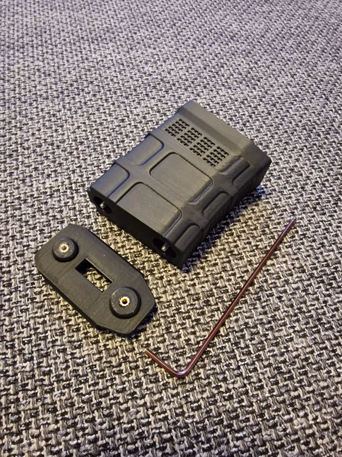 Assembly: Gắn 2 M3 heat set inserts vào modular plate, rồi lắp magazine spring như bình thường. Sau đó vặn Optic Extension lên bằng 2 bu-lông m3x30.