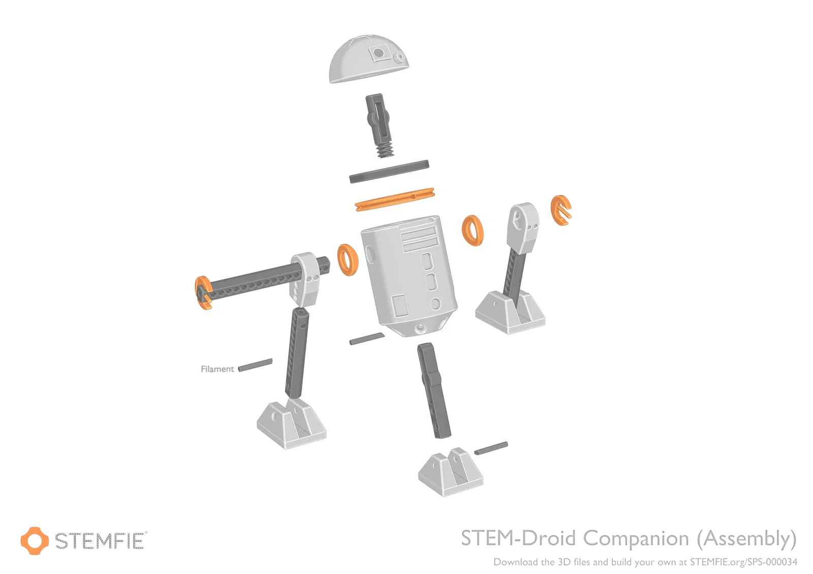 STEM-Droid Companion là robot để bàn thân thiện lắp từ các phần STEMFIE, có đầu vòm, tay cử động được và nhiều chi tiết tùy biến. Phù hợp cho bé từ 8+ để in, lắp ráp và chơi.