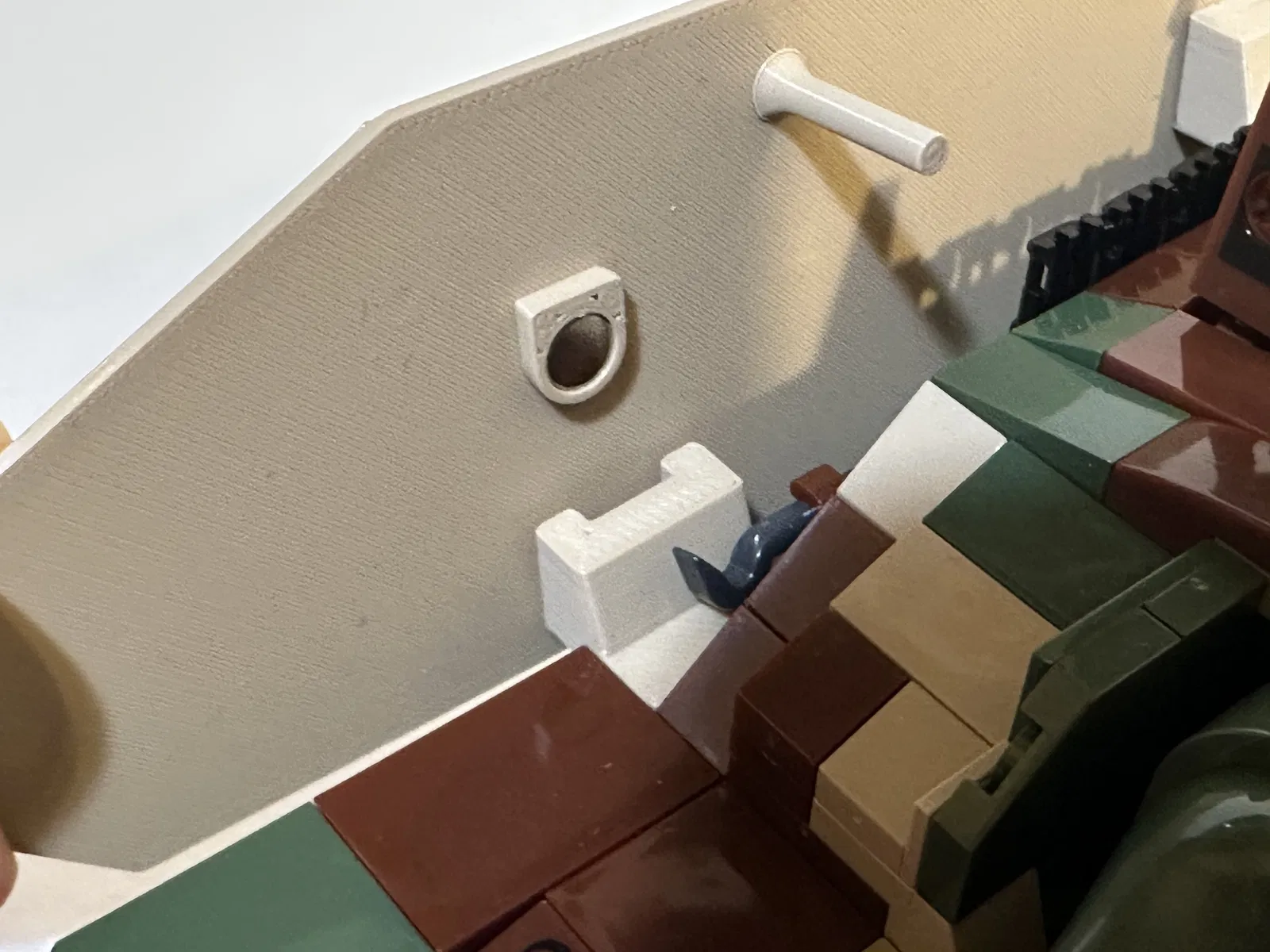 Sau khi in xong các chi tiết, tháo bốn plate 1x2 ở các vị trí được chỉ trên StuG. Thay các plate đó bằng các chi tiết anchor.
