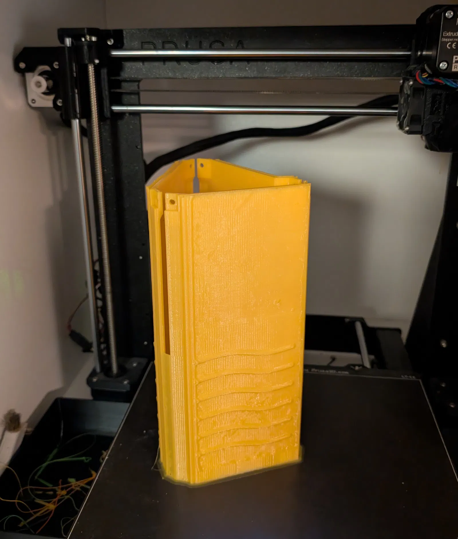Đây là print cao: ~20cm. Mình nối 3 phần side lại với nhau để in cho ổn định và thêm brim trong slicer để tăng bám bàn.