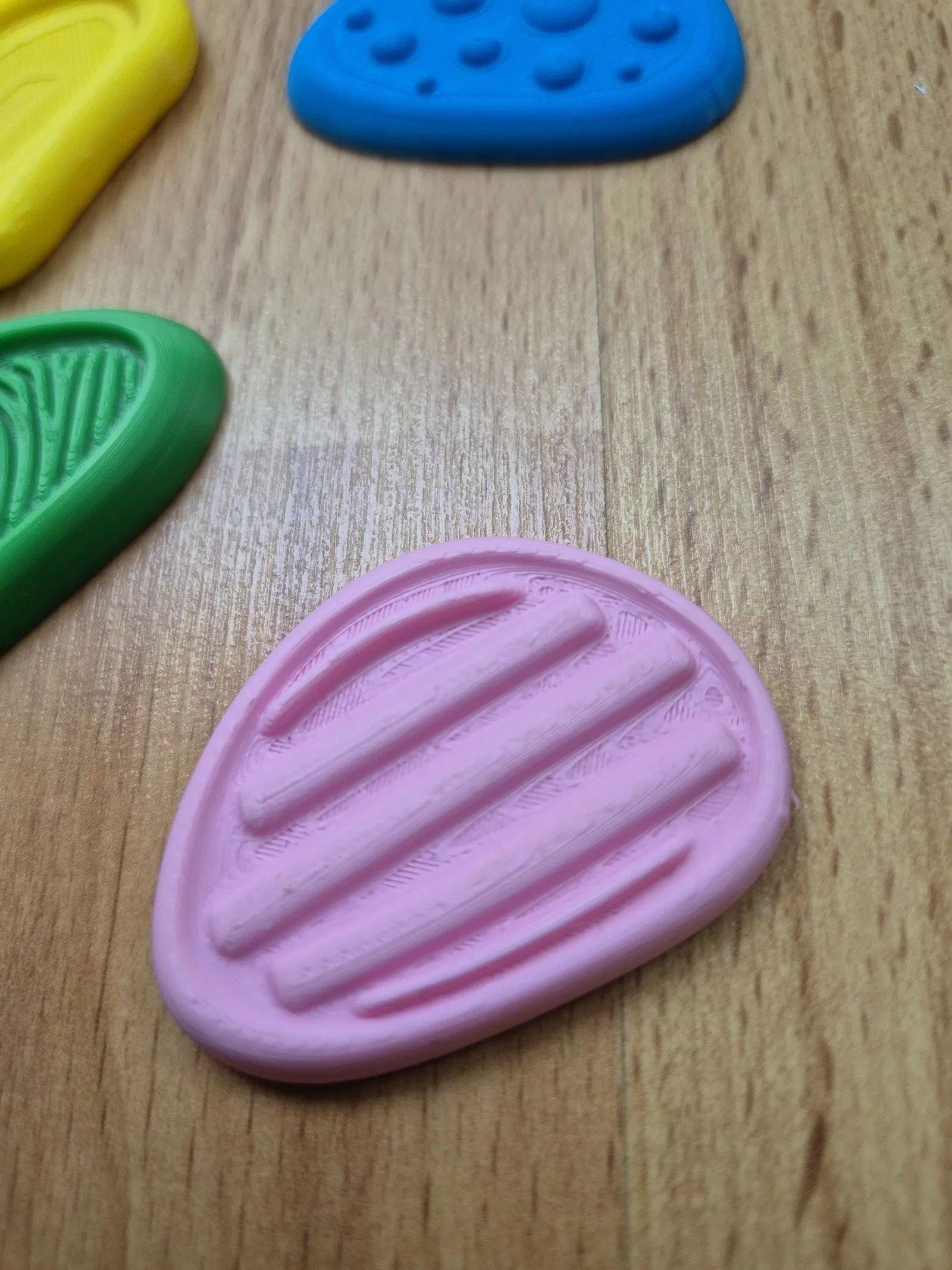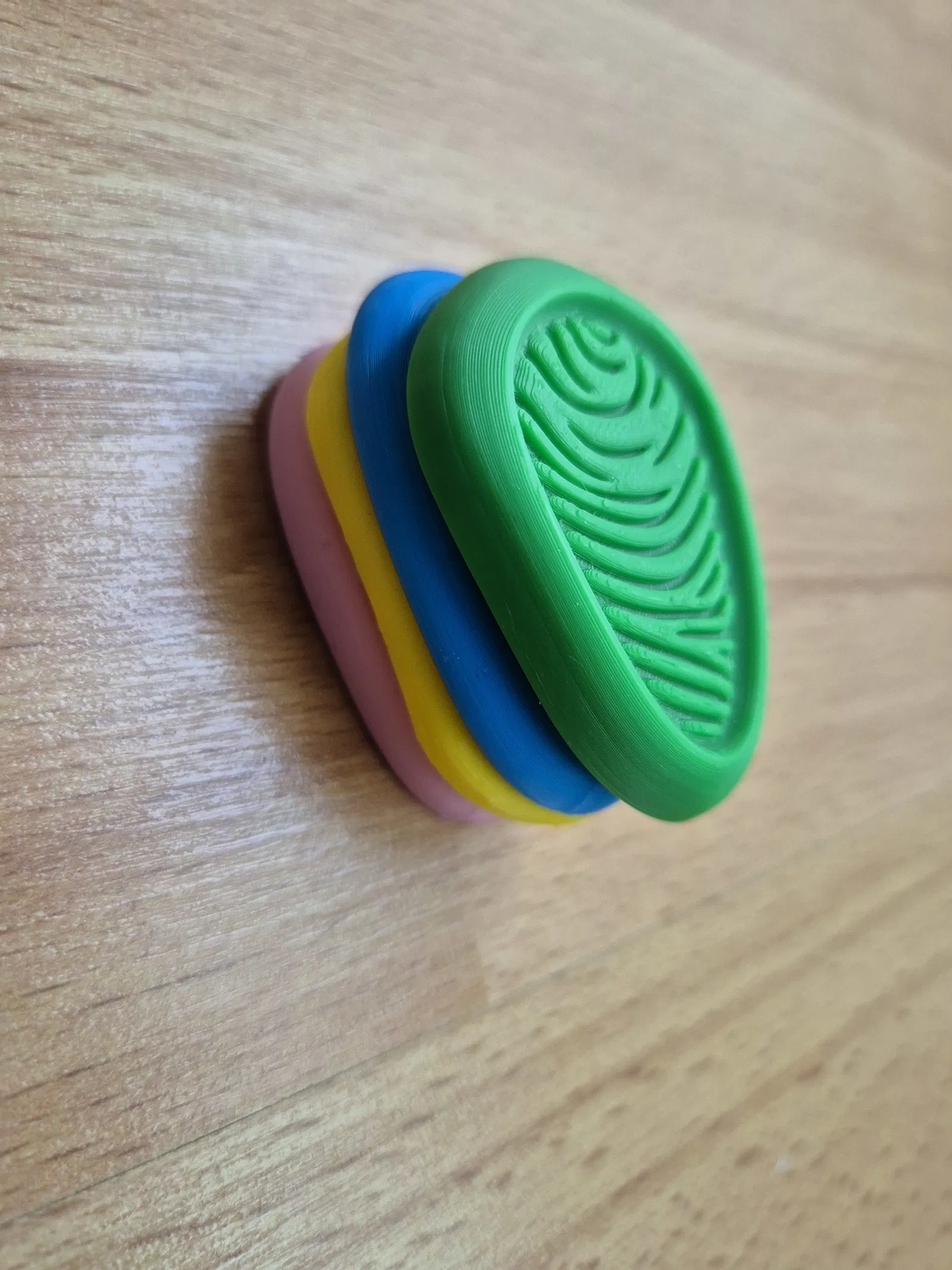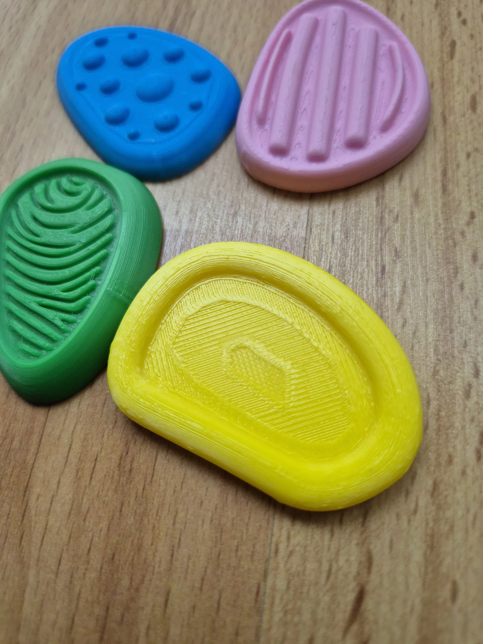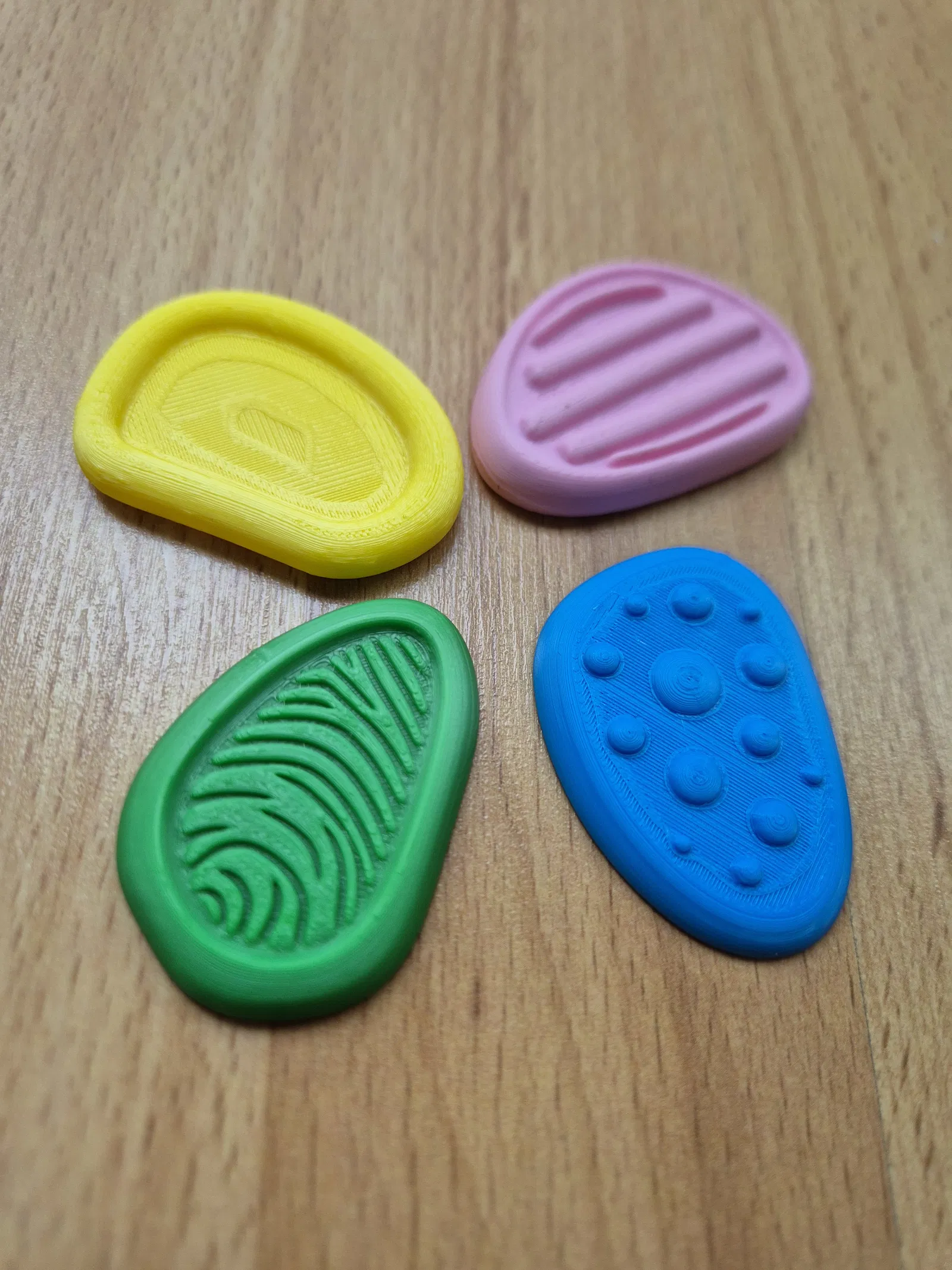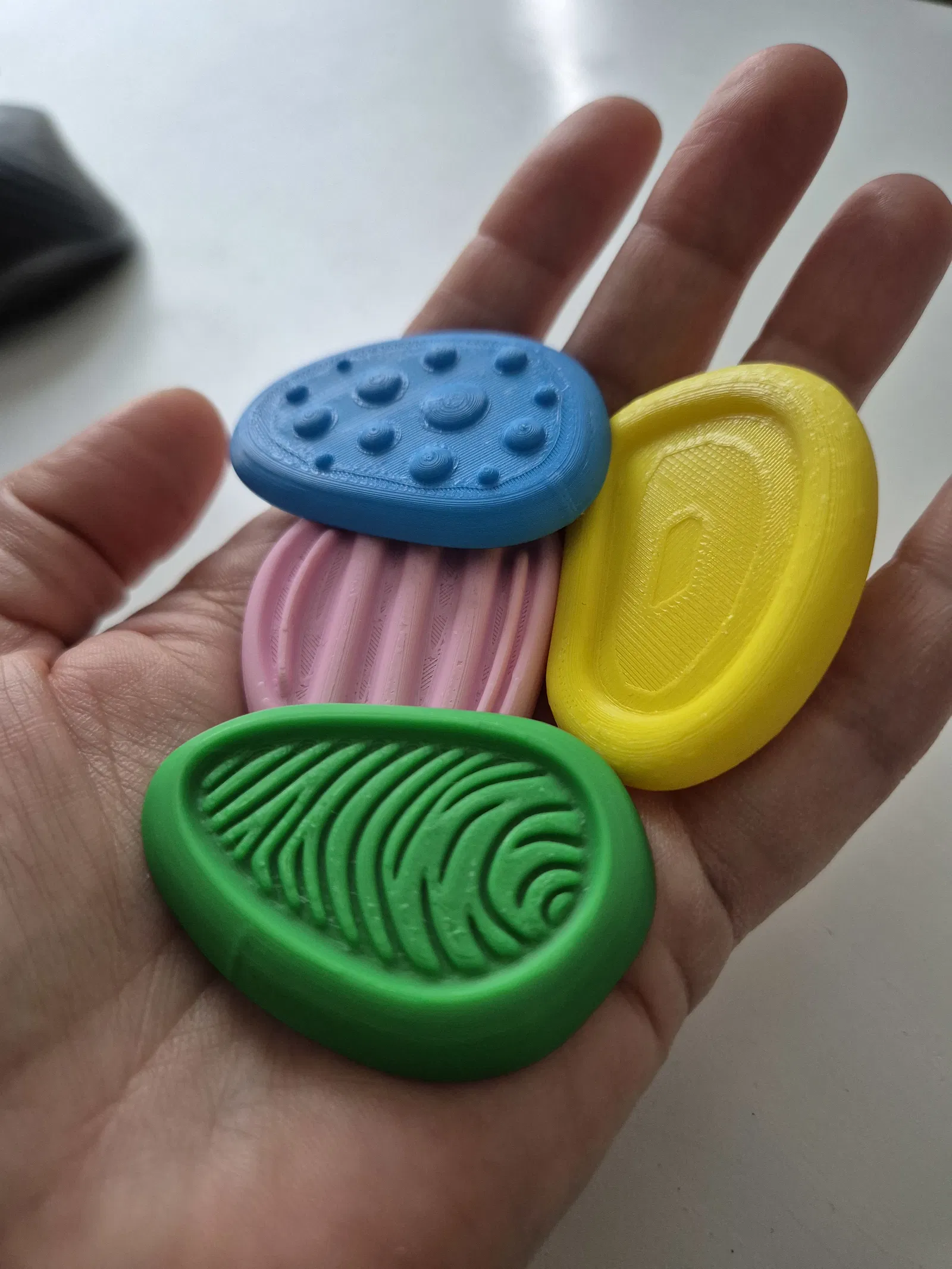 Bộ 4 viên đá cảm giác cầm tay giúp thư giãn, tăng tập trung và giảm lo âu. Kích thước nhỏ gọn tối đa 5 cm/viên, in PLA, dùng nozzle 0.4 mm (khuyến nghị 0.2 mm để mịn hơn), không cần AMS hay supports.