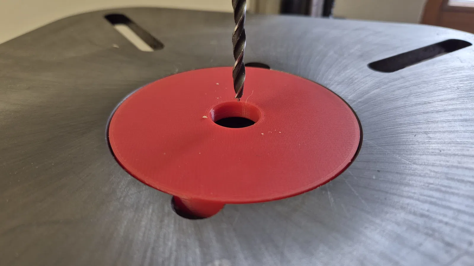 Mình đã dựng lại các miếng insert cho bàn khoan của máy khoan bàn Teknatool Nova Viking DVR của mình. Miếng insert zin bị vài vết do khoan nên mình làm 2 phiên bản: một bản kín như bản gốc nhưng cao hơn vài phần mười mm để giảm mép sắc, và một bản có lỗ 20mm ngay chính giữa.