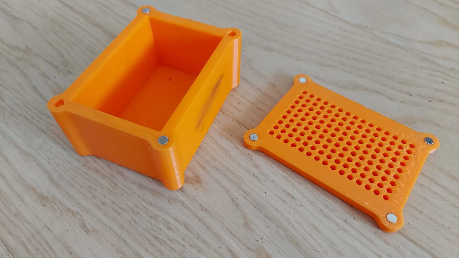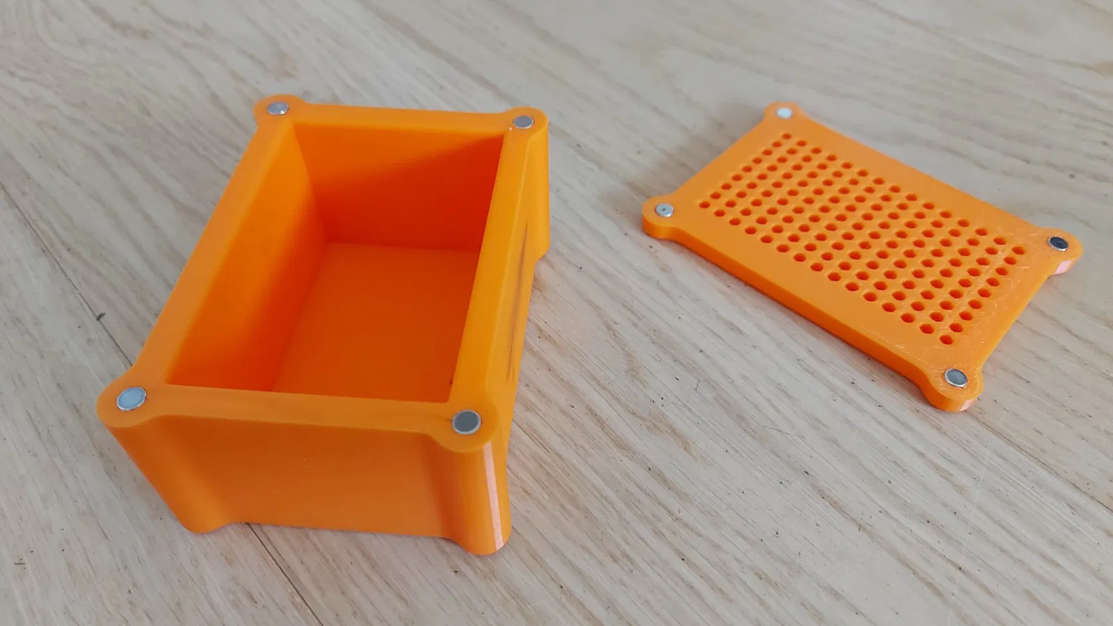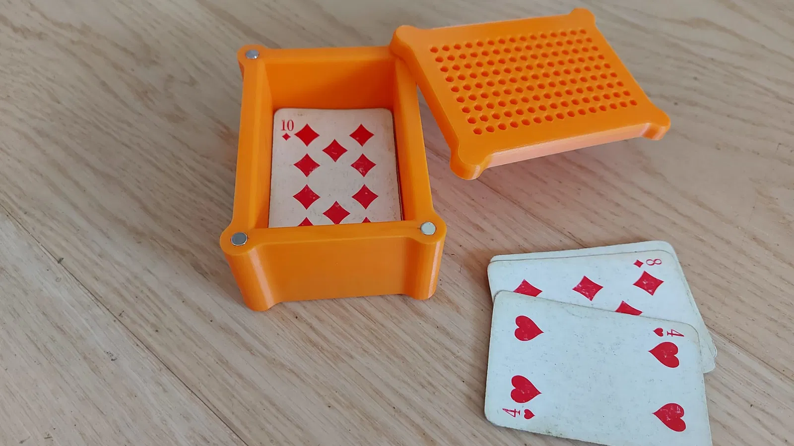 Deck box đóng nắp bằng nam châm, chứa vừa 2 bộ bài tiêu chuẩn. Thiết kế tối ưu để in không cần supports. Cần 8 nam châm 6mm x 3mm, lắp kiểu press-fit không cần keo (có thể thêm superglue cho chắc).