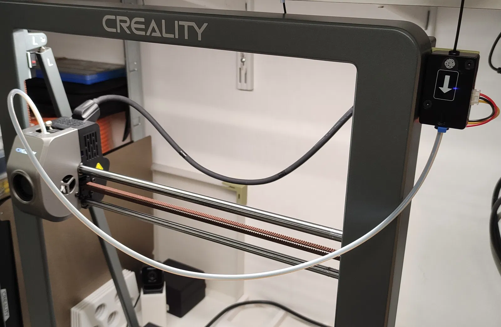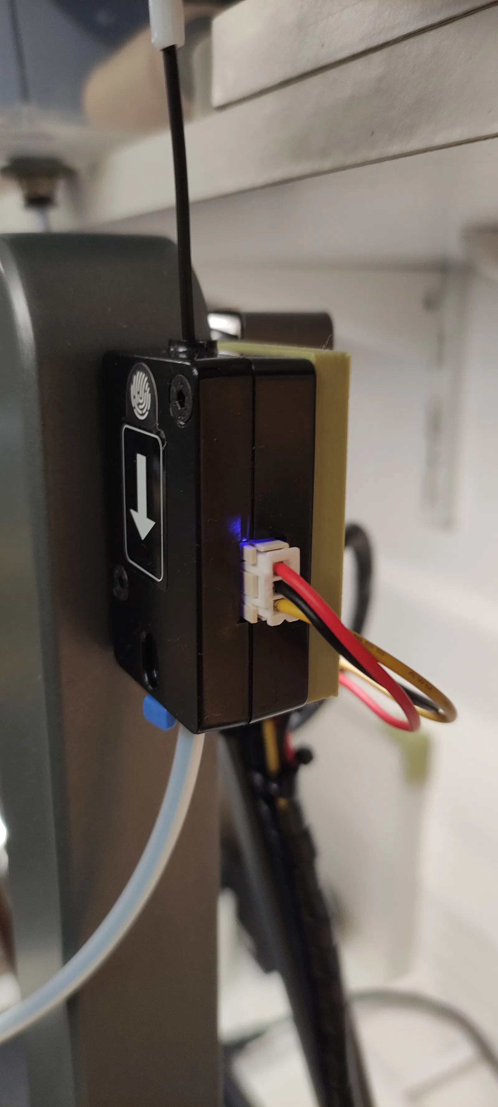 Mình cấp filament từ phía trên. Vì vậy mình đặt lại vị trí sensor sao cho hướng lắp đúng và khoảng cách giữa cuộn filament và sensor là ngắn nhất có thể.